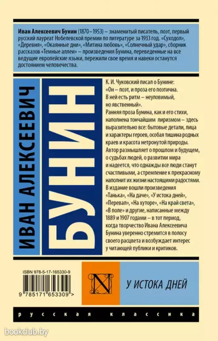 К. И. Чуковский писал о Бунине: «Он — поэт, и проза его поэтична. В ней есть ритм — неуловимый, но явственный». Ранняя проза Бунина, как и его стихи, наполнена тончайшим лиризмом — здесь выразительно все: бытовые детали, лица и характеры героев, особая тишина родных краев и красота нетронутой природы. Автор размышляет о прошлом и будущем, о судьбах людей, о развитии мира и надеется, что однажды все люди станут счастливыми, а стремление к прекрасному наполнит их жизни настоящими радостями. В издание вошли произведения «Танька», «На даче», «У истока дней», «Перевал», «На хуторе», «На край света», «В поле» и другие, написанные между 1889 и 1907 годами — в тот период, когда творчество Ивана Алексеевича Бунина уверенно стремится в полосу своего расцвета и возбуждает интерес у читающей публики и критиков.