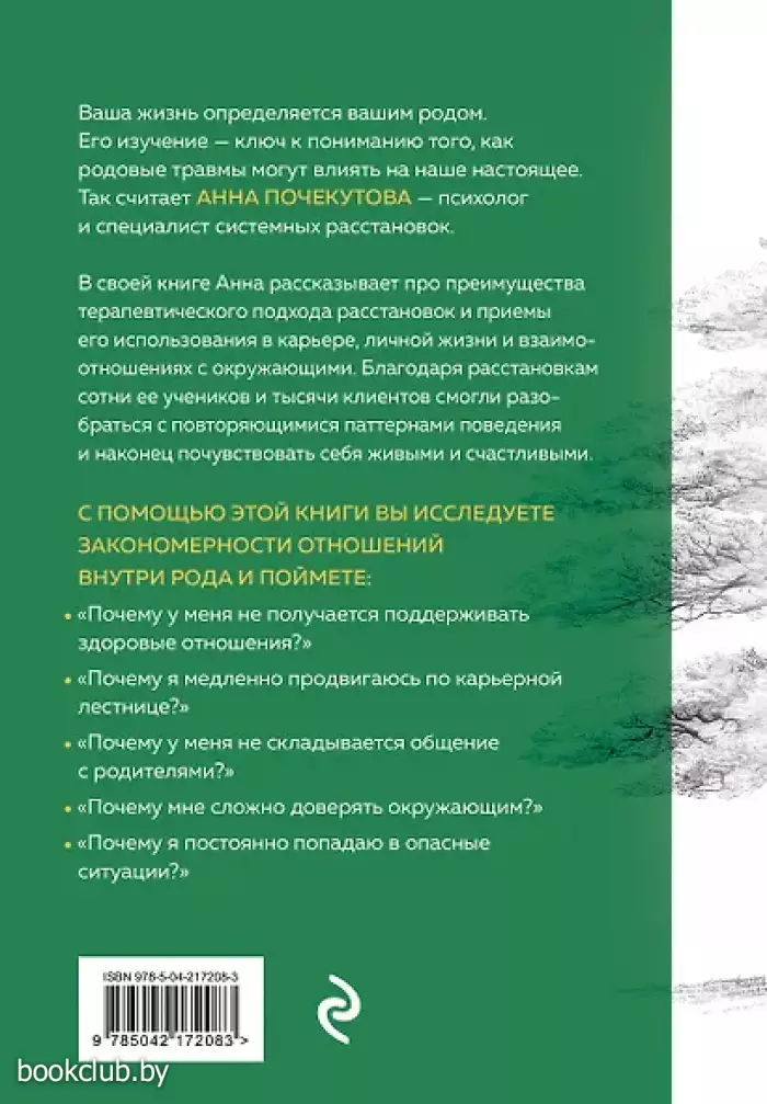 В своей книге Анна рассказывает про преимущества терапевтического подхода расстановок и приемы его использования в карьере, личной жизни и взаимоотношениях с окружающими. Благодаря расстановкам сотни ее учеников и тысячи клиентов смогли разобраться с повторяющимися паттернами поведения и наконец почувствовать себя живыми и счастливыми.