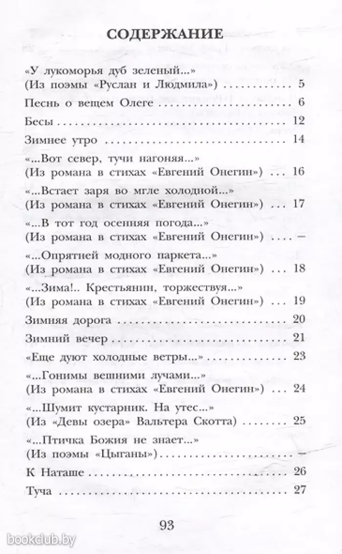 В сборник вошли избранные стихотворения Александра Сергеевича Пушкина (1799 –1837): "Зимнее утро", "Вольность", "Песнь о вещем Олеге", "Узник", "Пророк" и другие, а также отрывки из поэм и романа в стихах "Евгений Онегин". Произведения сборника входят в программы обязательного и внеклассного чтения в школе.