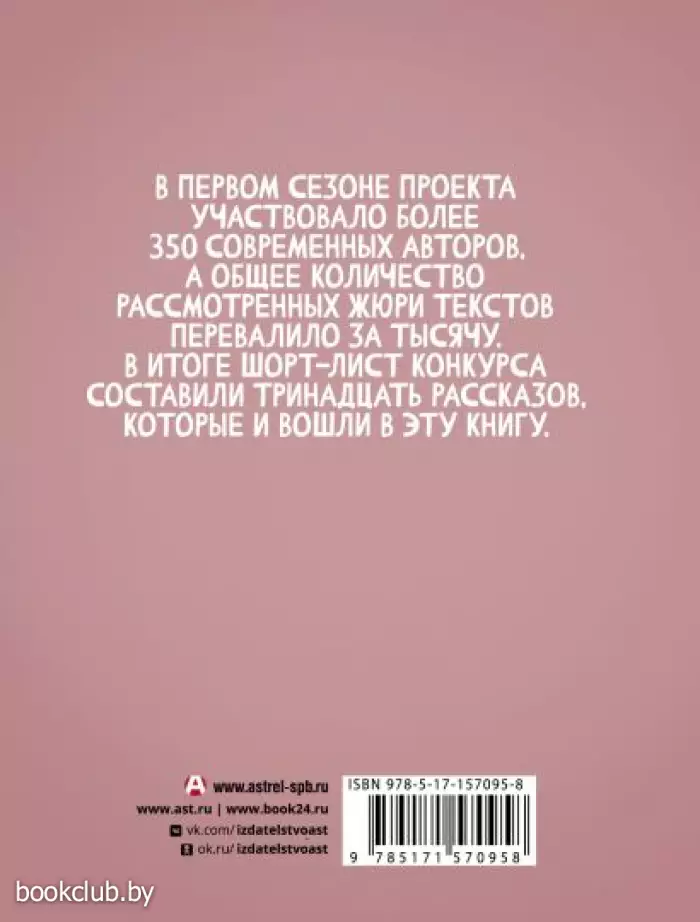 В первом сезоне проекта участвовало более 350 современных авторов, а общее количество рассмотренных жюри текстов перевалило за тысячу. В итоге шорт-лист конкурса составили тринадцать рассказов, которые и вошли в эту книгу.