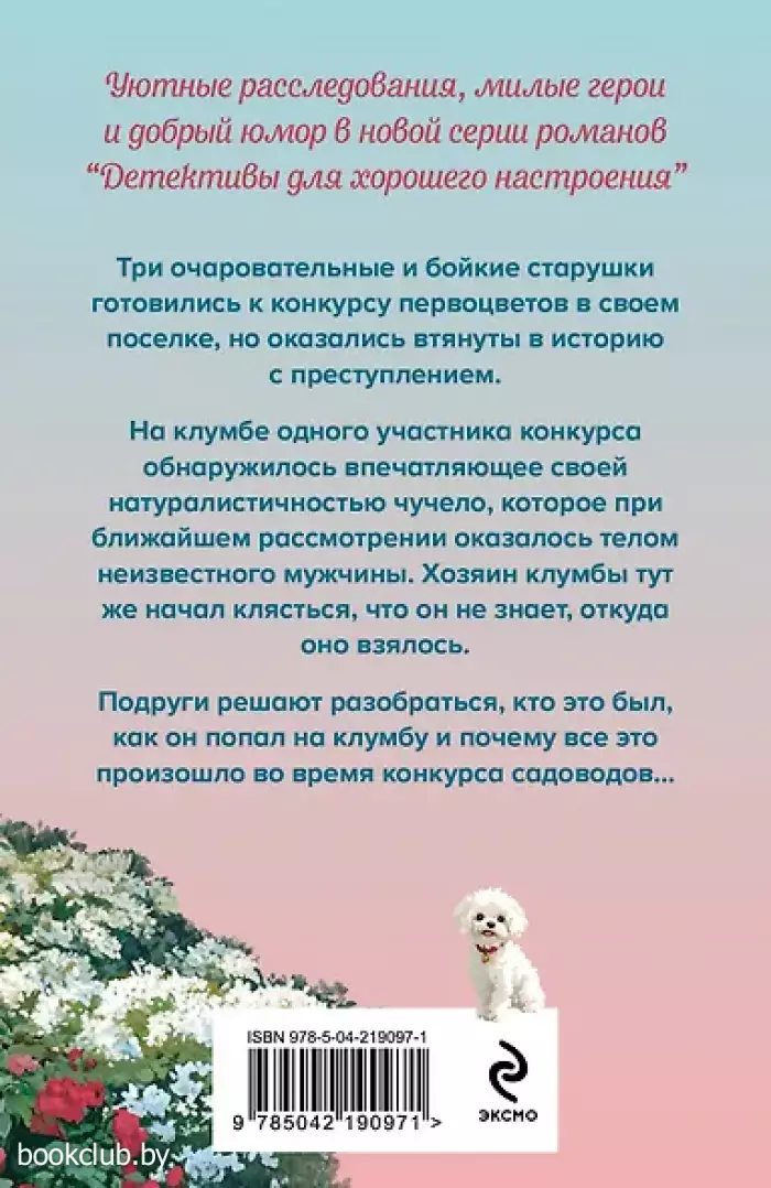 Дарья Калинина представляет новую серию уютных романов «Детективы для хорошего настроения». В ней три старушки-подружки спасают песиков, выращивают цветы и постоянно попадают в гущу событий! Читателей ждет уютное расследование и добрый юмор.
