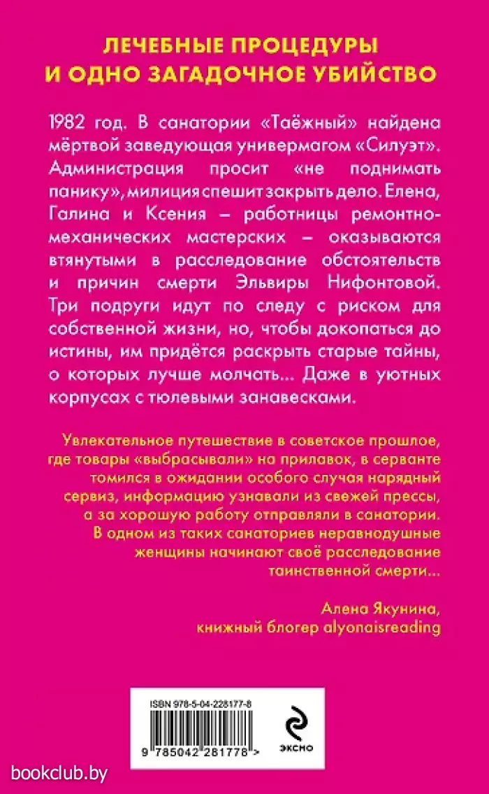 1982 год. В санатории «Таёжный» найдена мёртвой заведующая универмагом «Силуэт». Администрация просит «не поднимать панику», милиция спешит закрыть дело. Елена, Галина и Ксения — работницы ремонтно-механических мастерских — оказываются втянутыми в расследование обстоятельств и причин смерти Эльвиры Нифонтовой. Три подруги идут по следу с риском для собственной жизни, но чтобы докопаться до истины, им придётся раскрыть старые тайны, о которых лучше молчать… Даже в уютных корпусах с тюлевыми занавесками.