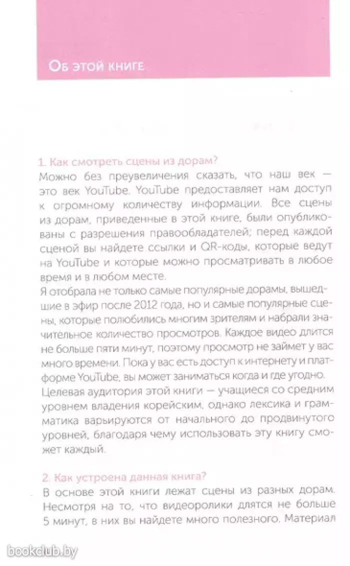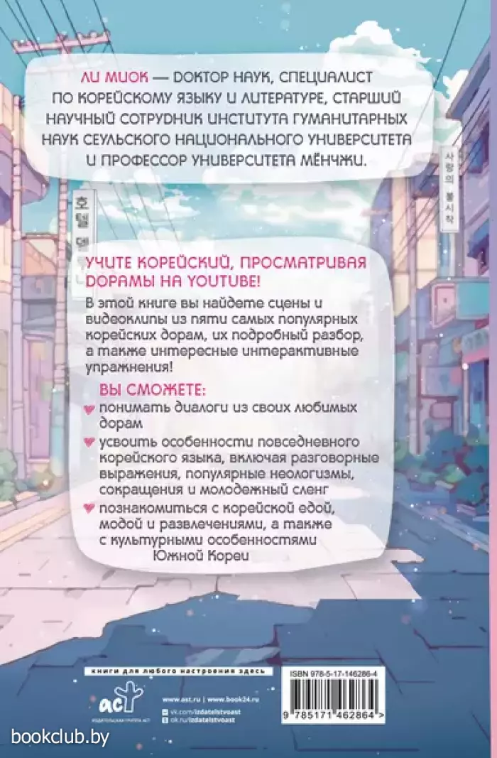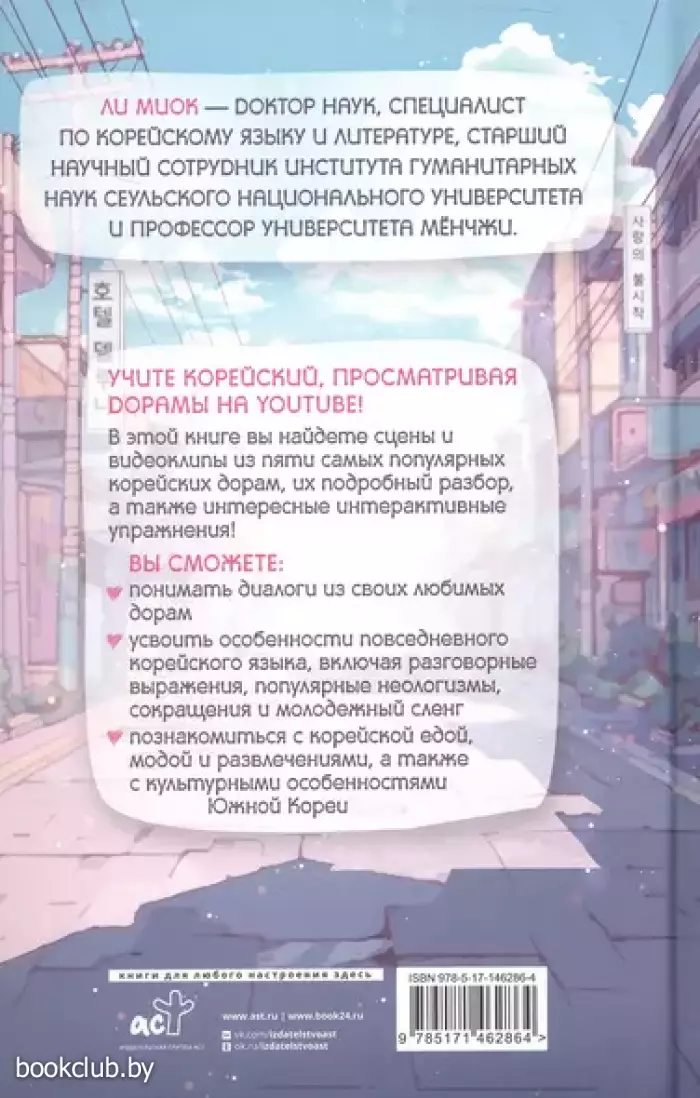 Увлекаетесь корейской культурой? Любите дорамы? Учите корейский язык, но обычные учебники кажутся слишком скучными? Тогда эта книга для вас! Она разрушит ваше представление об обучении, сделав его не просто полезным, но и увлекательным. Здесь вы найдете сцены из пяти легендарных дорам — «Человек со звезды», «Потомки солнца», «Гоблин», «Отель «Дель Луна», «Аварийная посадка любви», — их подробный разбор с отрывками на YouTube, а также интересные интерактивные упражнения.