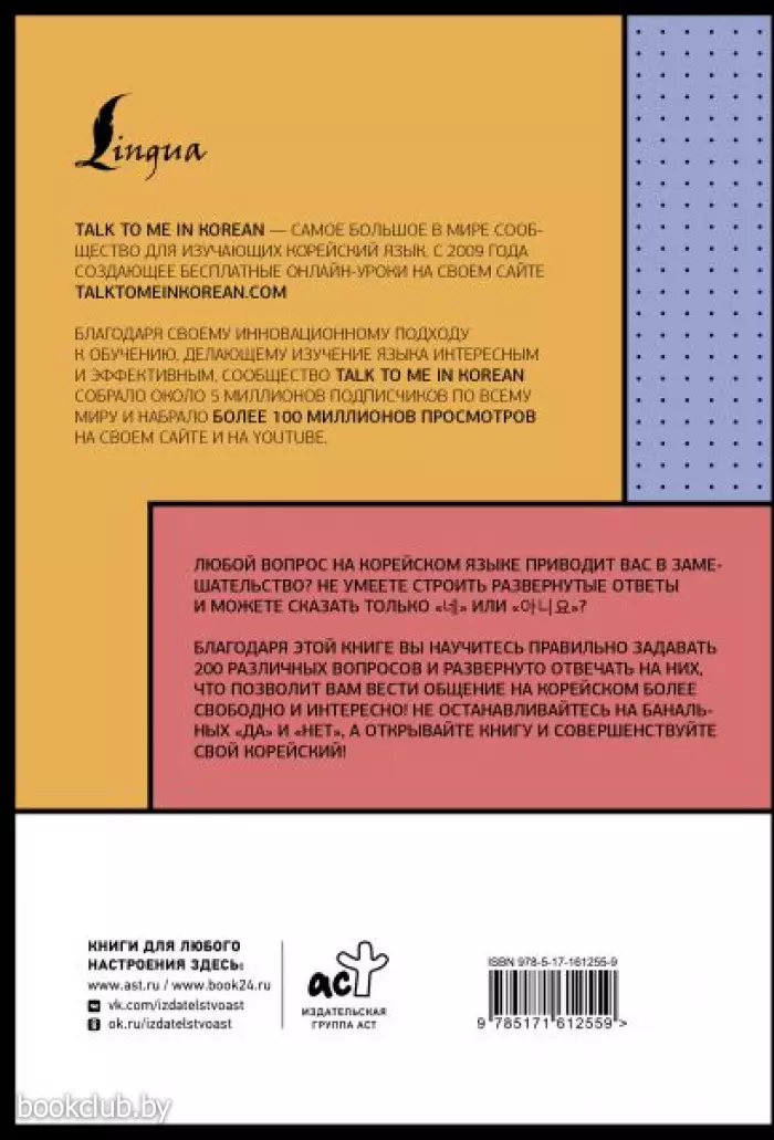 Любой вопрос на корейском языке, приводит вас в замешательство? Не умеете строить развернутые ответы и можете сказать только "네" или "아니요"? С этой книгой вы научитесь правильно задавать 200 различных вопросов и развернуто отвечать на них, что позволит вам общаться на корейском свободно и интересно! Не останавливайтесь на банальных "да" и "нет", а открывайте книгу и совершенствуйте свой корейский!