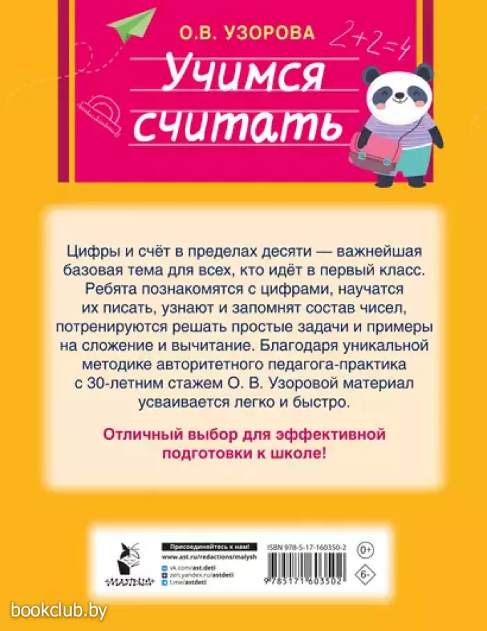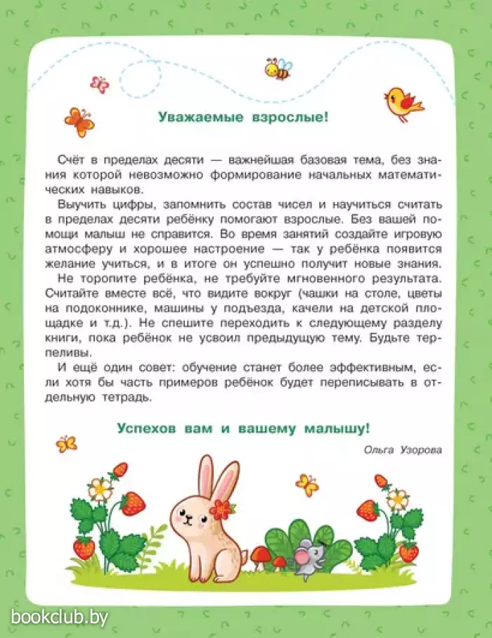 Цифры и счёт в пределах десяти — важнейшая базовая тема, без которой невозможно формирование начальных математических знаний. В книге известного педагога-практика О.В. Узоровой «Учимся считать» дана пошаговая отработка темы «Первый десяток». Ребёнок познакомится с цифрами, научится их писать, узнает и запомнит состав чисел, потренируется решать простые задачи и примеры на сложение и вычитание. Для дошкольного возраста.