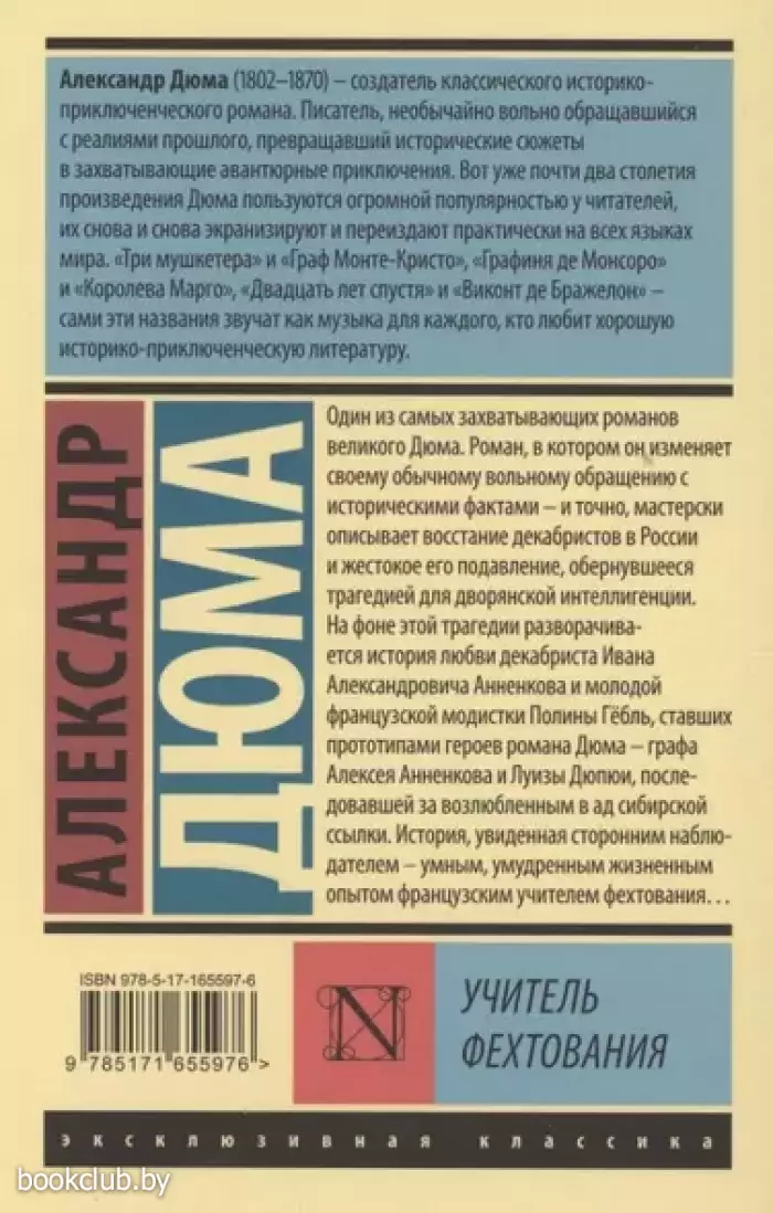 Роман, в котором он изменяет своему обычному вольному обращению с историческими фактами — и точно, мастерски описывает восстание декабристов в России и жестокое его подавление, обернувшееся трагедией для дворянской интеллигенции. На фоне этой трагедии разворачивается история любви декабриста Ивана Александровича Анненкова и молодой французской модистки Полины Гёбль, ставших прототипами героев романа Дюма — графа Алексея Анненкова и Луизы Дюпюи, последовавшей за возлюбленным в ад сибирской ссылки. История, увиденная сторонним наблюдателем - умным, умудренным жизненным опытом французским учителем фехтования…