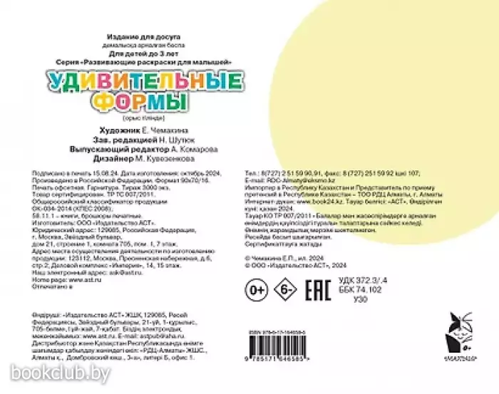 Книги издательства «АСТ» из серии «Развивающие раскраски для малышей» - отличное приобретение для вас и ваших близких. Для вашего удобства при оформлении заказа по телефону назовите код товара: 413742