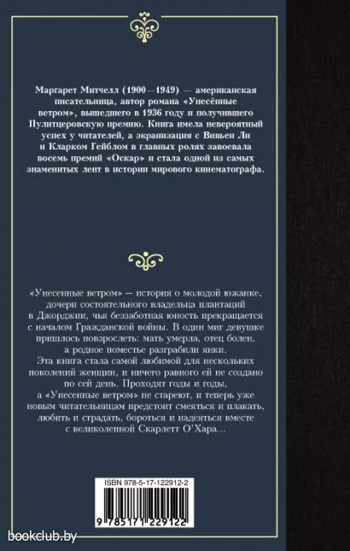 Эта книга стала самой любимой для нескольких поколений женщин, и ничего равного ей не создано по сей день. Проходят годы и годы, а "Унесенные ветром" не стареют, и теперь уже новым читательницам предстоит смеяться и плакать, любить и страдать, бороться и надеяться вместе с великолепной Скарлетт О’Хара...