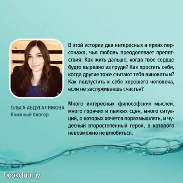 «В этой истории два интересных и ярких персонажа, чья любовь преодолевает препятствия. Как жить дальше, когда твое сердце будто вырвано из груди? Как простить себя, когда другие тоже считают тебя виноватым? Как подпустить к себе хорошего человека, если не заслуживаешь счастья? Много интересных философских мыслей, много горячих и пылких сцен, много ситуаций, о которых хочется поразмышлять, и чудесный второстепенный герой, в которого невозможно не влюбиться». — ОЛЬГА АДБУГАЛИМОВА, книжный блогер