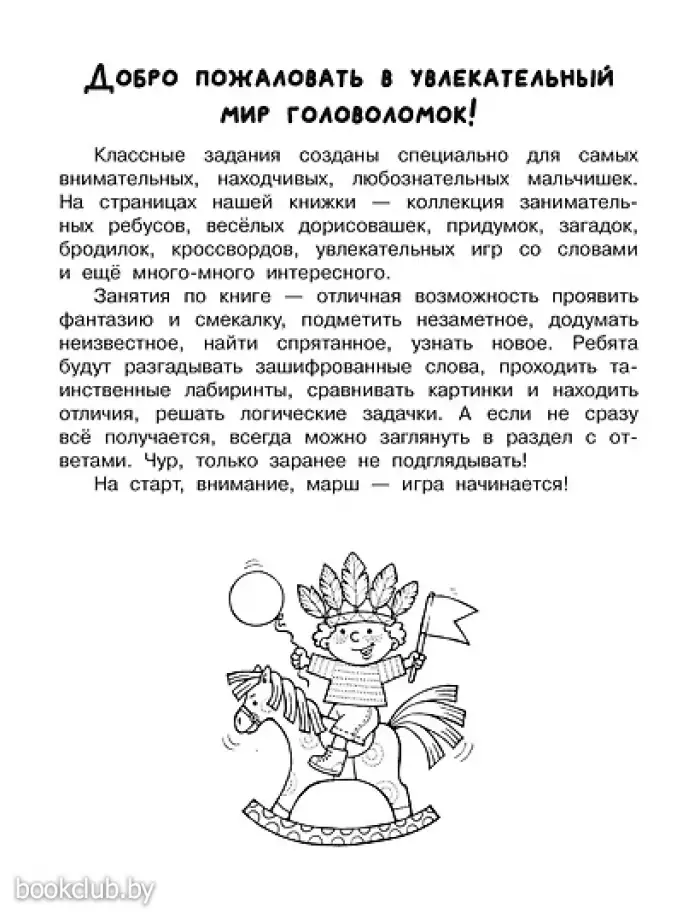 На страницах "Увлекательной книги головоломок для мальчиков" ребята найдут множество занимательных заданий: ребусов, лабиринтов, картинок с отличиями, игр с буквами и словами, логических задачек. Головоломки, собранные в книге, позволят детям развить мышление, потренировать логику и внимание, память и воображение.