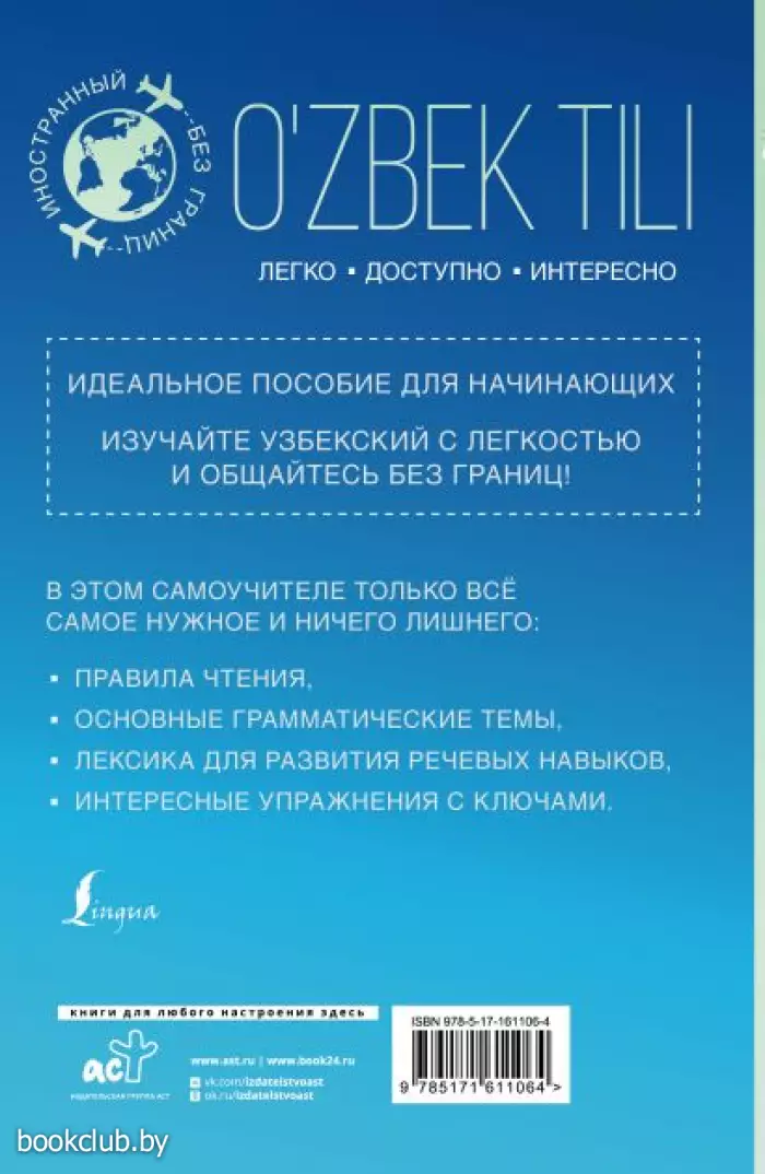 В пособии есть все необходимое для тех, кто только приступает к изучению узбекского языка: основные правила чтения, базовая грамматика и полезная лексика, а также упражнения, которые позволят закрепить пройденный материал. Вы всегда сможете проверить себя по ключам в конце книги.