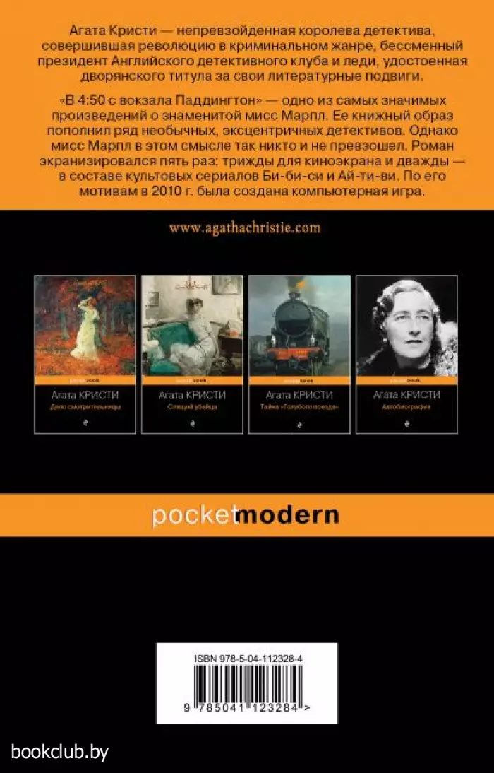 «В 4.50 с вокзала Паддингтон» — одно из самых значимых произведений о знаменитой мисс Марпл. Ее книжный образ пополнил ряд необычных, эксцентричных детективов. Однако мисс Марпл в этом смысле так никто и не превзошел. Роман экранизировался пять раз: трижды для киноэкрана и дважды — в составе культовых сериалов «Би-би-си» и «Ай-ти-ви». По его мотивам в 2010 году была создана компьютерная игра.