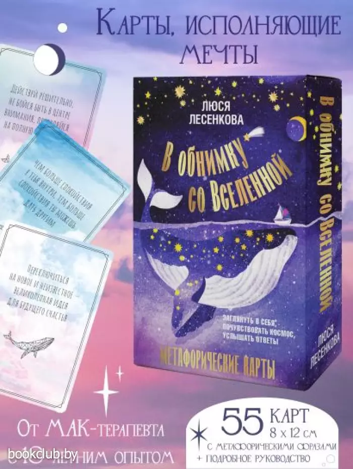Каждая карта погружает тебя в теплые объятия Вселенной. И в этой атмосфере полного принятия, доверия и заботы ты понимаешь: что чувствуешь, куда и к чему стремишься, как вытащить себя из любой передряги и прийти к любой мечте.