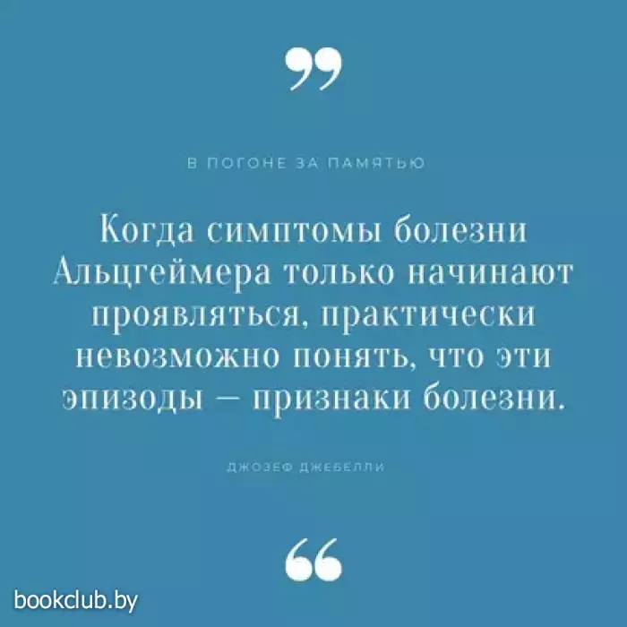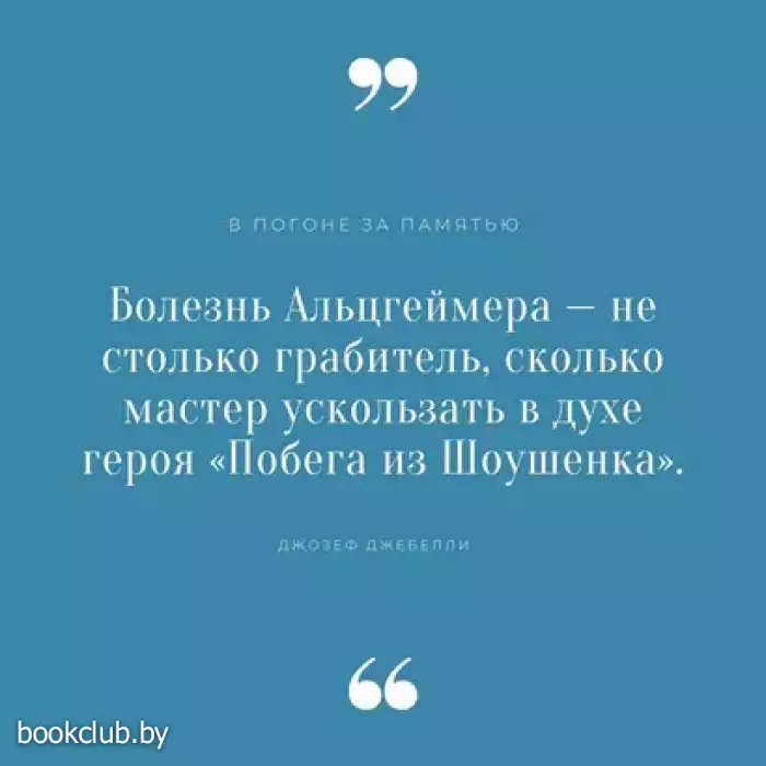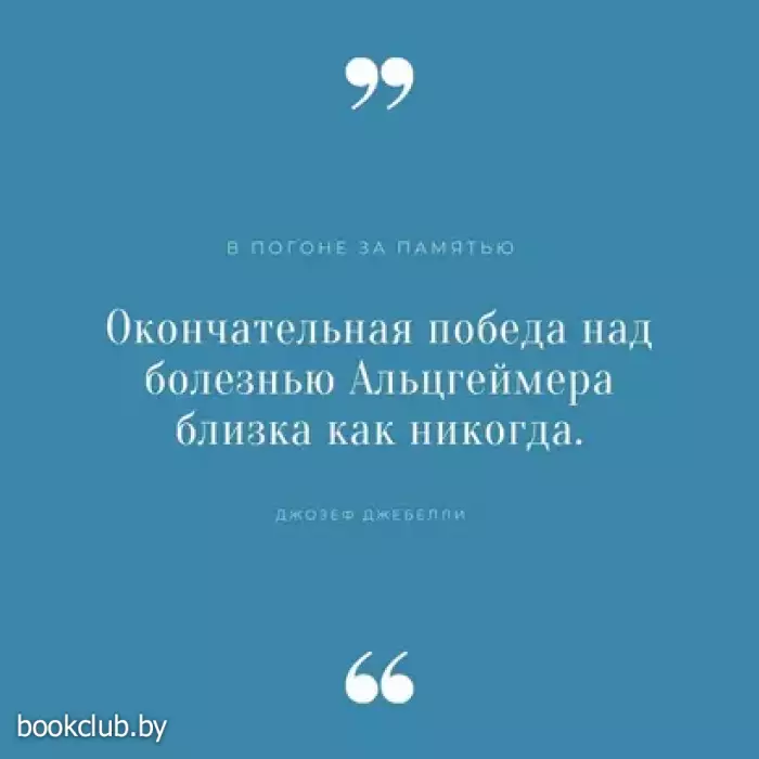 Книга Джозефа Джебелли "В погоне за памятью. История борьбы с болезнью Альцгеймера" - это не только откровенные истории о том, как живется людям, страдающим от болезни Альцгеймера, и их близким. Это еще и научно-популярная литература: книга содержит огромное количество выдержек из современных исследований и экспериментов по борьбе с потерей памяти, которые ранее не были доступны широкой публике.
