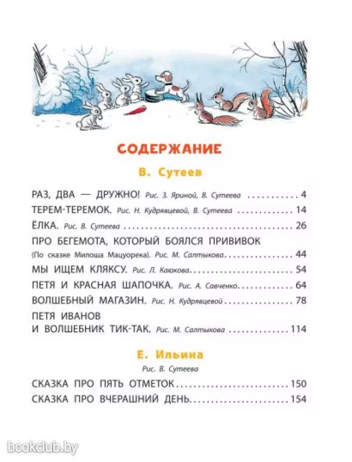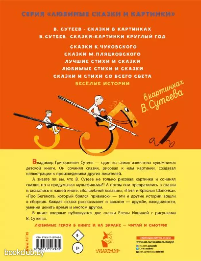 А знаете ли вы, что В. Сутеев не только рисовал картинки и сочинял сказки, но и придумывал мультфильмы! А потом они превратились в сказки и оказались в нашей книге. «Волшебный магазин», «Петя и Красная Шапочка», «Про Бегемота, который боялся прививок» − эти и другие истории вошли в сборник. Каждая сказка рассказывает о важном – дружбе, находчивости, умении ценить время и многом другом.