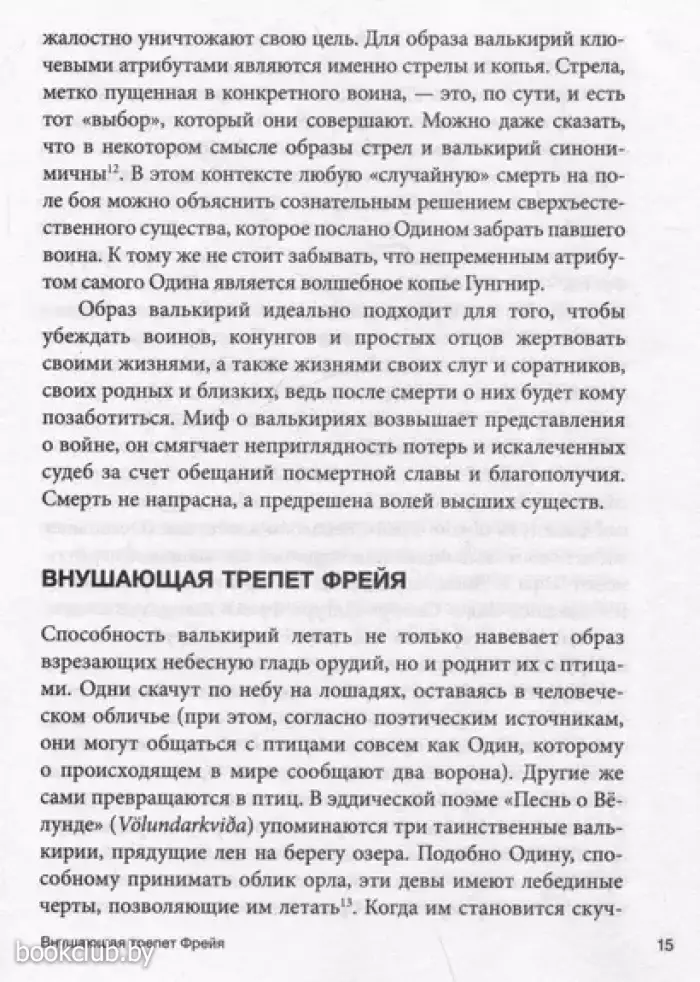 Валькирии — сверхъестественные существа женского пола, которые выбирают, кому умереть, а кому жить на поле боя. Они защищают одних, но направляют копья, стрелы и клинки мечей в тела других. Мифы викингов о валькириях пытаются возвыситьбанальность войны — сделать боль и страдания славными и достойными. Женщины в этих историях принимают полное участие в своих общинах, к лучшему или к худшему. Кто такие валькирии и чем они отличаются от обычных скандинавских женщин? Почему валькирии не привязаны к семье и детям, что для них значит мужчина и зачем ей смерть?
