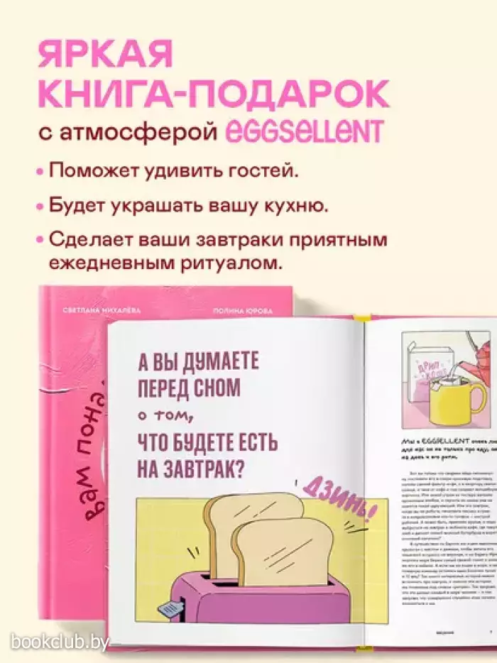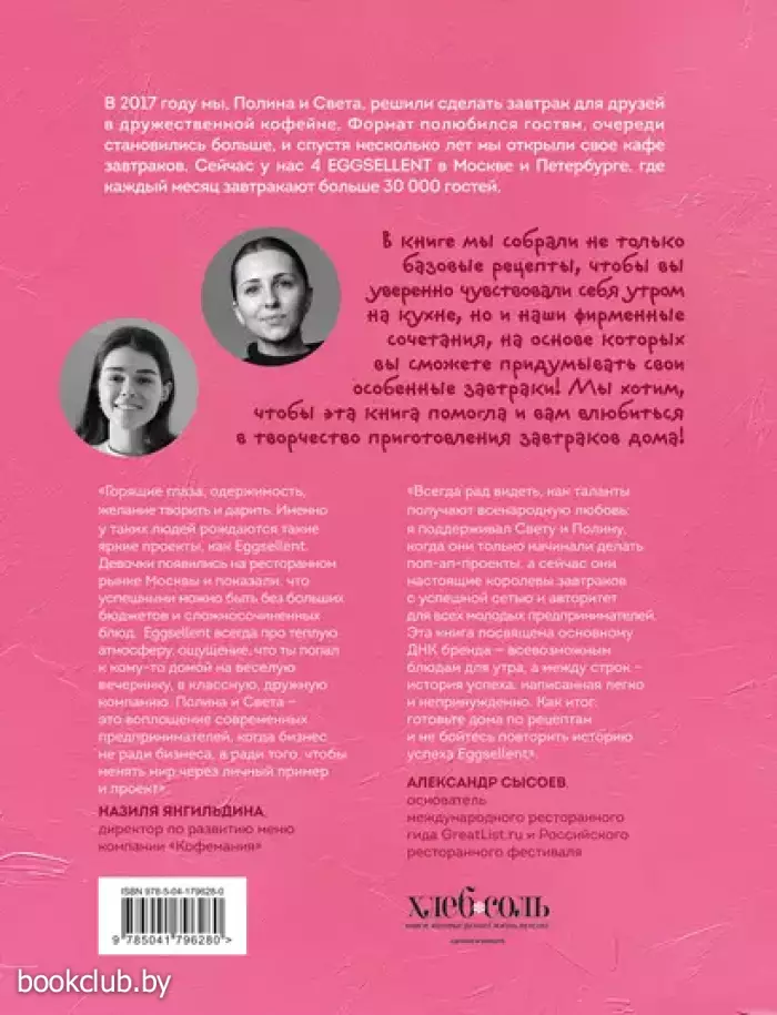 2017 году мы, Полина и Света, решили сделать завтрак для друзей в дружественной кофейне. Формат полюбился гостям, очереди становились больше, и спустя несколько лет мы открыли свое кафе завтраков. Сейчас у нас 4 EGGSELLENT в Москве и Петербурге, где каждый месяц завтракают больше 30 000 гостей. В книге мы собрали не только базовые рецепты, чтобы вы уверенно чувствовали себя утром на кухне, но и наши фирменные сочетания, на основе которых вы сможете придумывать свои особенные завтраки! Мы хотим, чтобы эта книга помогла и вам влюбиться в творчество приготовления завтраков дома!