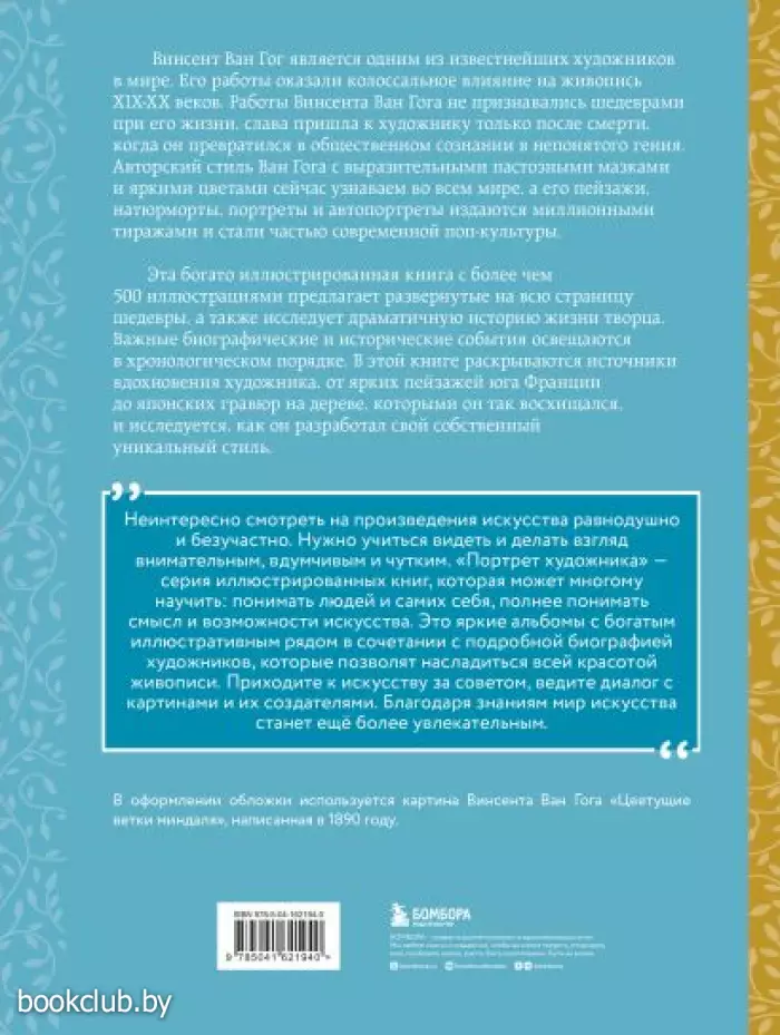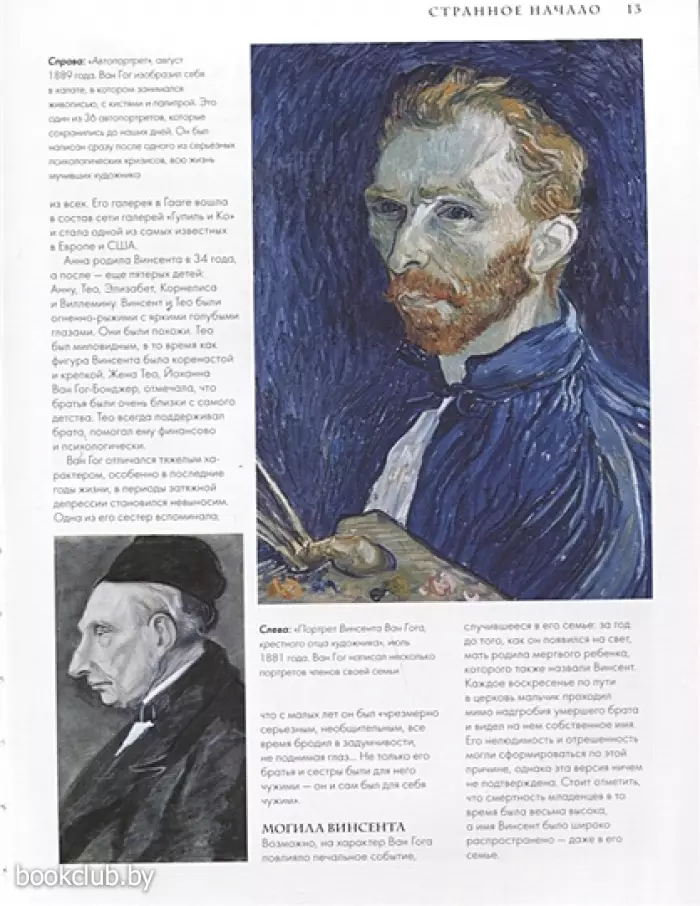 Каждая книга из серии «Портрет художника» построена по уникальному принципу: в первой части издания освещается биография художника в контексте эпохи и вехи его творческого пути, а во второй представлена галерея всех его самых значимых работ с подробными описаниями. Книга «Ван Гог. Жизнь и творчество в 500 картинах» повествует о творческой судьбе одного из самых известных художников-импрессионистов, она описывает историю жизни художника в культурном контексте современного ему общества, позволяет проследить его творческий путь к вершинам мастерства и увидеть формирование индивидуального стиля.