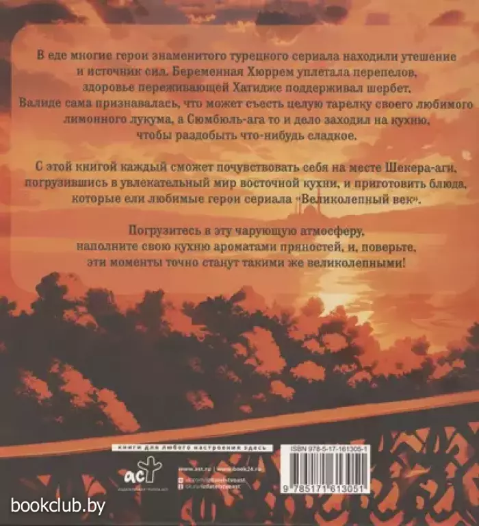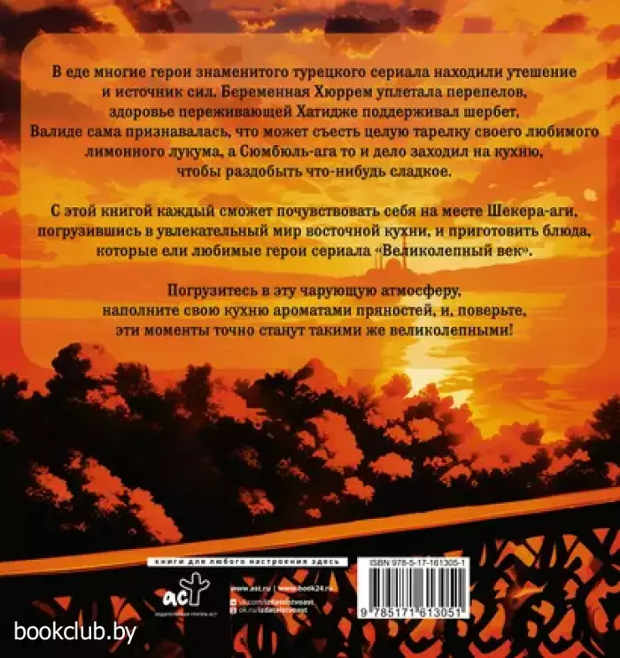 С этой книгой каждый сможет почувствовать себя на месте Шекера-аги, погрузившись в увлекательный мир восточной кухни, и приготовить блюда, которые ели любимые герои сериала «Великолепный век». Погрузитесь в эту чарующую атмосферу, наполните свою кухню ароматами пряностей и, поверьте, эти моменты точно станут такими же великолепными!