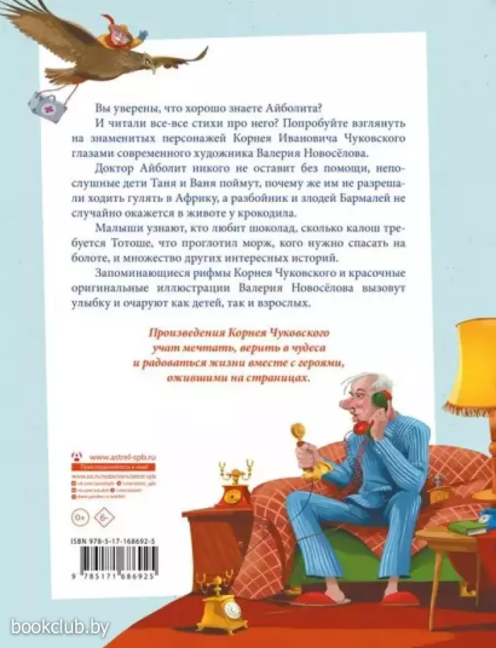 Запоминающиеся рифмы Корнея Чуковского и красочные оригинальные иллюстрации Валерия Новосёлова вызовут улыбку и очаруют как детей, так и взрослых.