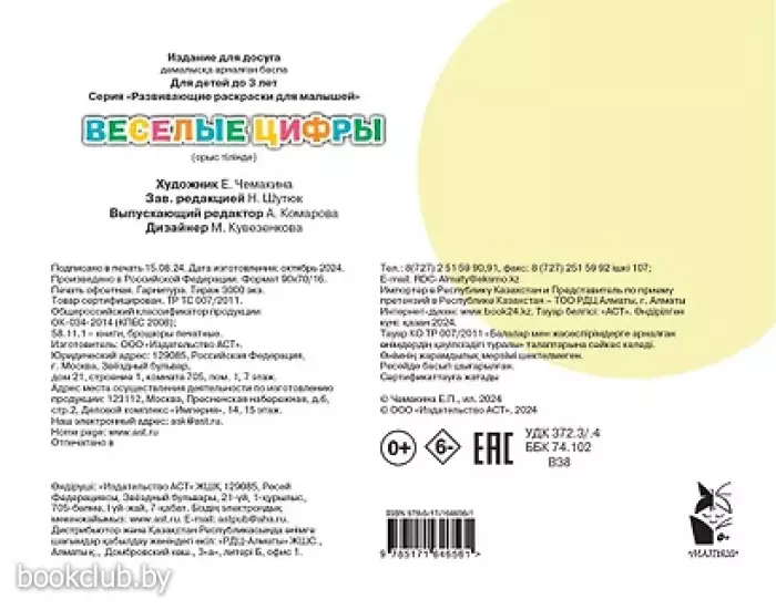 Книги издательства «АСТ» из серии «Развивающие раскраски для малышей» станут прекрасным дополнением вашей библиотеки. Для вашего удобства при оформлении заказа по телефону назовите код товара: 413739
