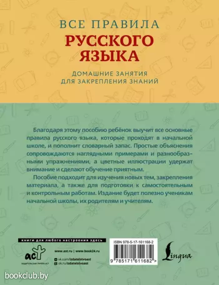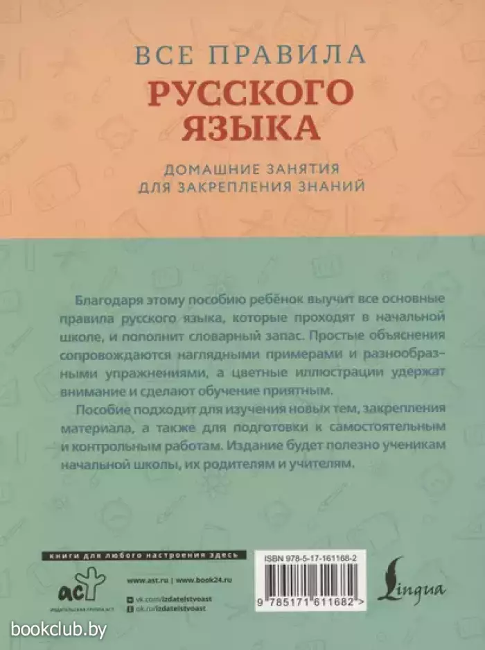 Книга «Все правила русского языка с наглядными примерами и упражнениями. 1—4 классы» - правильный выбор и отличное приобретение. Для вашего удобства при оформлении заказа по телефону назовите код товара: 409180