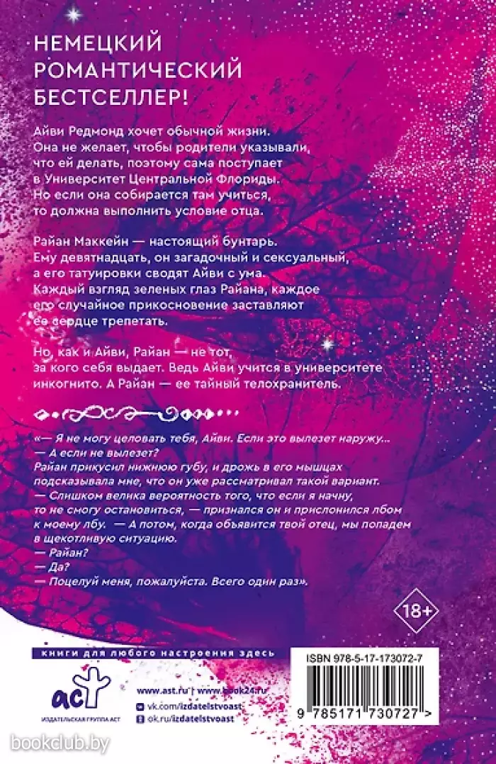Айви Редмонд хочет обычной жизни. Она не желает, чтобы родители указывали, что ей делать, поэтому сама поступает в Университет Центральной Флориды. Но если она собирается там учиться, то должна выполнить условие отца. Райан Маккейн — настоящий бунтарь. Ему девятнадцать, он загадочный и сексуальный, а его татуировки сводят Айви с ума. Каждый взгляд зеленых глаз Райана, каждое его случайное прикосновение заставляют ее сердце трепетать. Но, как и Айви, Райан — не тот, за кого себя выдает. Ведь Айви учится в университете инкогнито. А Райан — ее тайный телохранитель.