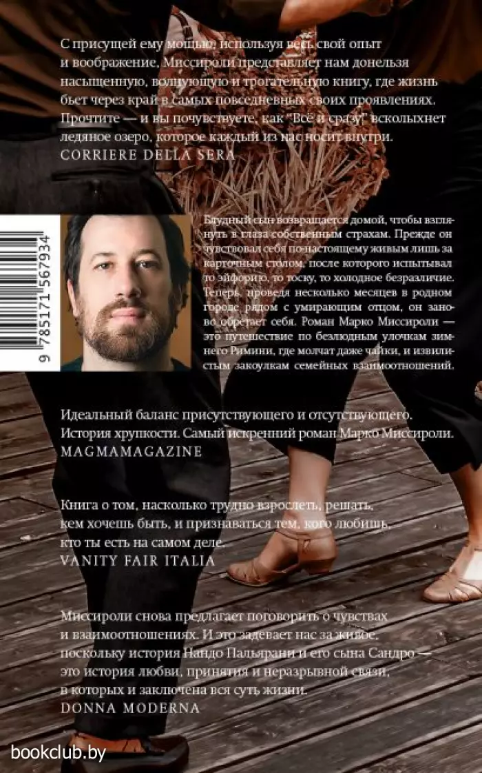Нандо успел поработать электронщиком, железнодорожником, барменом, но его настоящей страстью всегда были танцы. Они с женой Катериной принимали участие во всех танцевальных марафонах на Ривьере — разумеется, желая победить. Семейная страсть к победам передалась и Сандро, только его стихия — карты. Когда‑то у него была работа, подруга, будущее. Их вытеснил карточный стол, где Сандро надеется, рискнув, выиграть всё и сразу, испытывая то эйфорию, то тоску, то холодное безразличие. И теперь блудный сын возвращается домой, чтобы взглянуть в глаза собственным страхам. Роман Марко Миссироли — это путешествие по безлюдным улочкам зимнего Римини, где молчат даже чайки, и извилистым закоулкам семейных взаимоотношений.