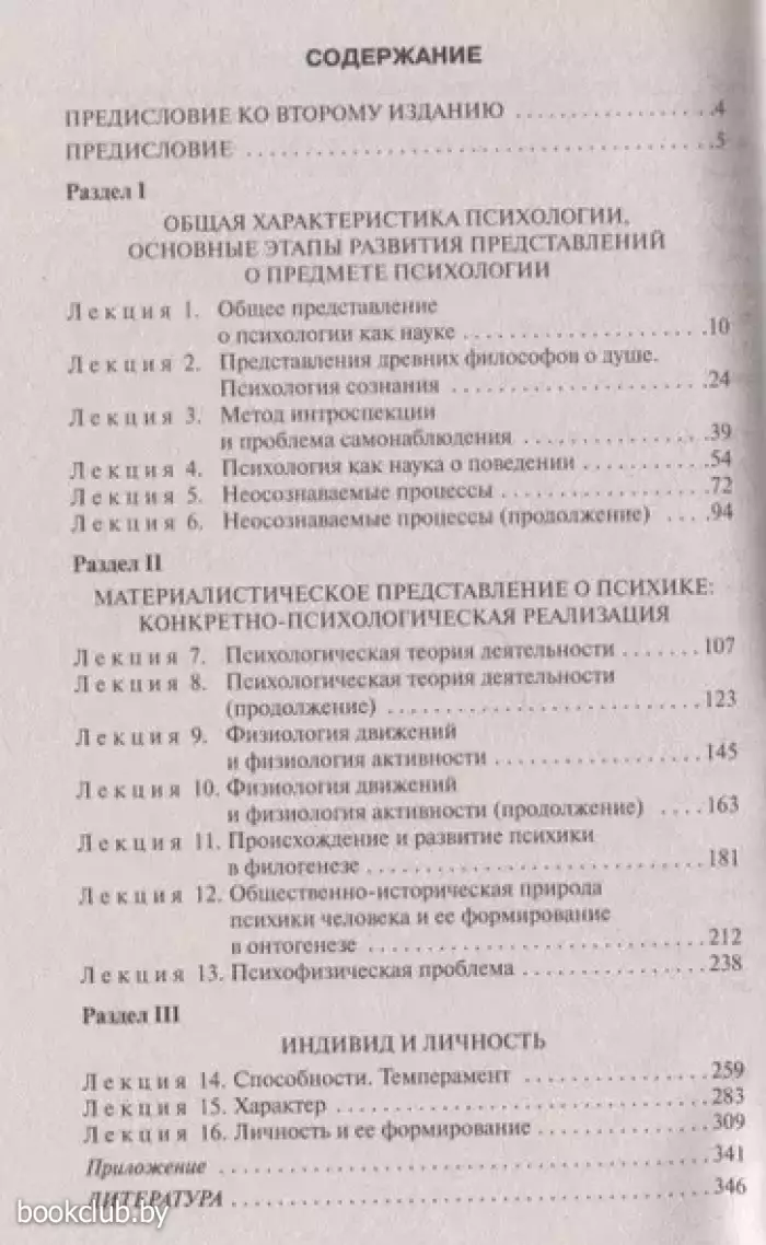 Первый раздел представляет собой попытку подвести к некоторым основным проблемам психологии через историю развития взглядов на предмет психологии. Во втором разделе рассматривает ряд фундаментальных проблем психологической науки с позиций диалектико-материалистического представления о психике. Третий раздел рассказывает о социальных аспектах психики человека.