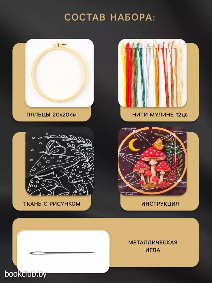 Вышивка гладью «Огни спящей чащи», 20×20 см