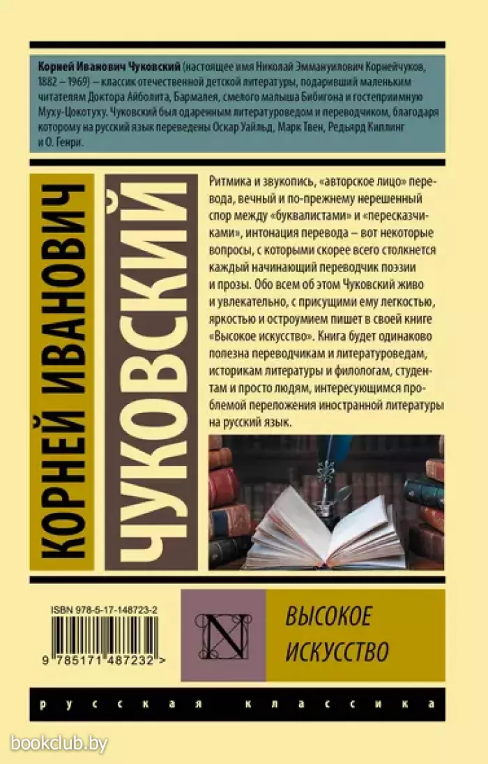 Ритмика и звукопись, "авторское лицо" перевода, вечный и по-прежнему нерешенный спор между "буквалистами" и "пересказчиками", интонация перевода – вот некоторые вопросы, с которыми скорее всего столкнется каждый начинающий переводчик поэзии и прозы. Обо всем об этом Чуковский живо и увлекательно, с присущими ему легкостью, яркостью и остроумием пишет в своей книге "Высокое искусство". Книга будет одинаково полезна переводчикам и литературоведам, историкам литературы и филологам, студентам и просто людям, интересующимся проблемой переложения иностранной литературы на русский язык.