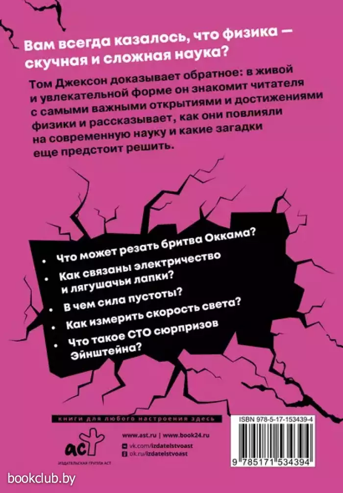 Физика — великая наука, раскрывшая загадки самых таинственных явлений природы. Все, что нас окружает: материя, звук, цвет, — подчиняется ее строгим законам. Британский популяризатор науки Том Джексон в живой и увлекательной форме проведет читателя по самым важным открытиям и достижениям ученых-физиков и расскажет, как они повиляли на современную науку и что нас ждет впереди.