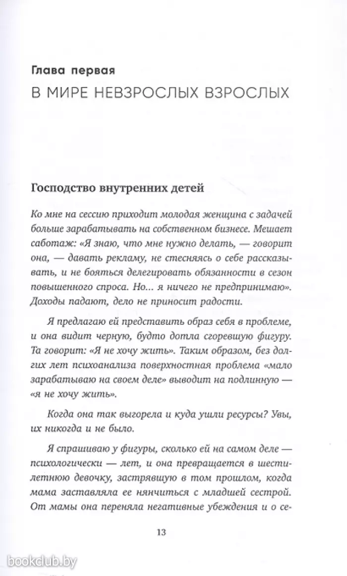 «Психологически-ребенок не способен к эффективному менеджменту собственной жизни. Он не умеет расставлять приоритеты и организовать жизнь так, чтобы разные сферы ее не конфликтовали, а двадцати четырех часов в сутках хватало, чтобы уделить внимание всем значимым задачам».
