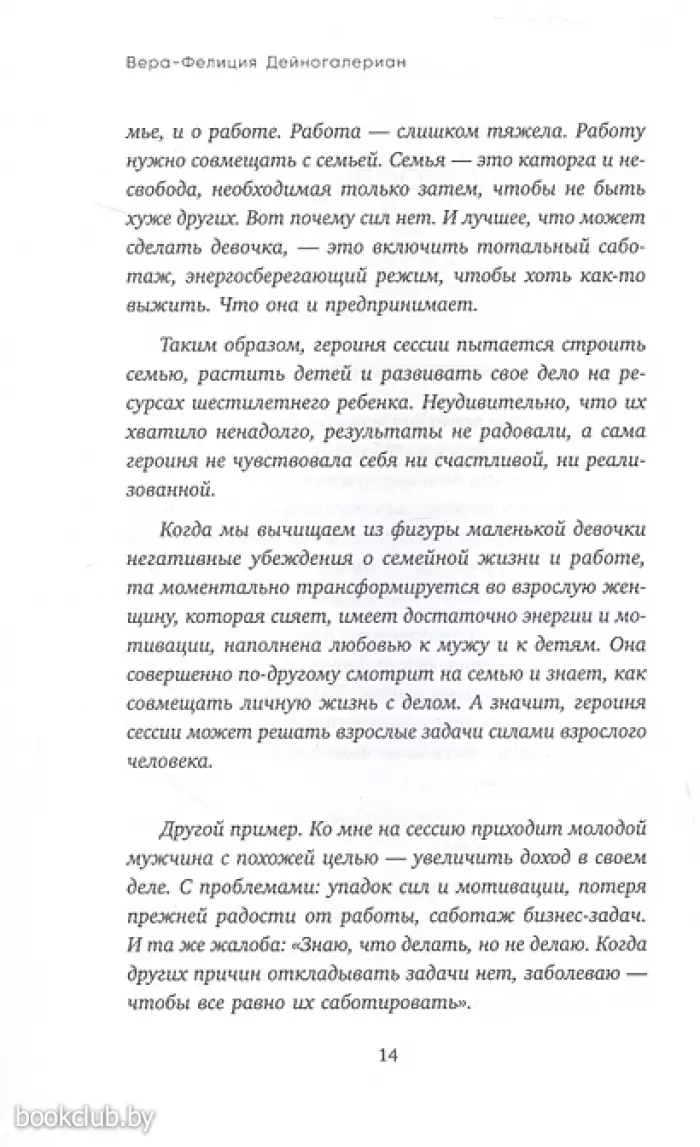 В этой книге Вера предлагает читателям самые действенные инструменты для работы с нашим бессознательным. Освоив их, мы сможем повзрослеть, чтобы великолепно чувствовать себя во взрослом мире огромных возможностей, открытых дорог и большой свободы. Здесь также поднимается проблема психологической незрелости и внутреннего ребенка. Автор использует эмоционально-образную терапию, предлагая клиентам и читателям обратиться к внутренним образам, порождающим внутренний конфликт.