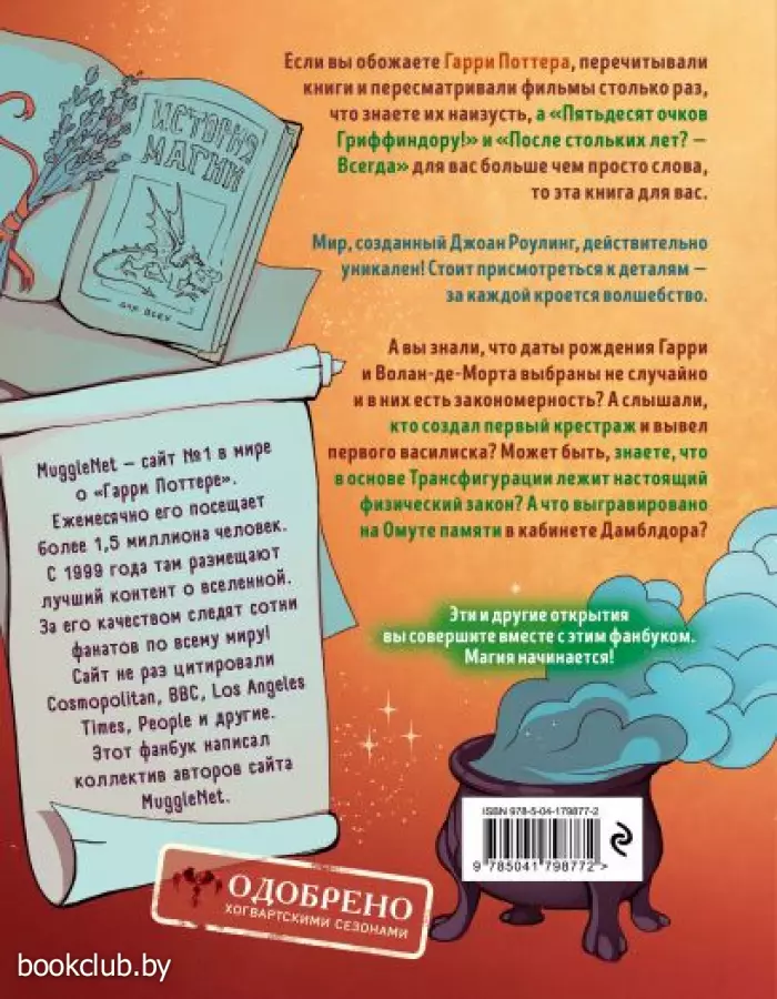 В начале книги ты найдёшь письмо-приглашение в Хогвартс, а в конце — диплом об окончании волшебной школы (аккуратно отрежь их по пунктирной линии). Стань настоящим волшебником, а фанбук тебе в этом поможет!