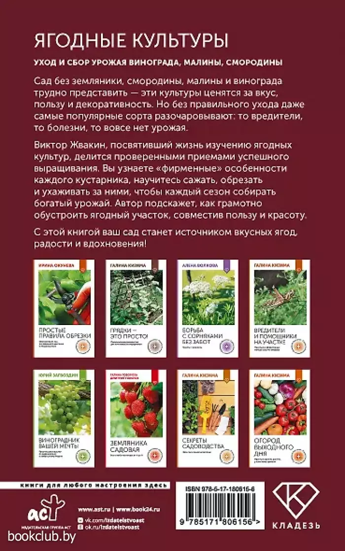 Виктор Жвакин, посвятивший жизнь изучению ягодных культур, делится проверенными приемами успешного выращивания. Вы узнаете "фирменные" особенности каждого кустарника, научитесь сажать, обрезать и ухаживать за ними, чтобы каждый сезон собирать богатый урожай. Автор подскажет, как грамотно обустроить ягодный участок, совместив пользу и красоту.