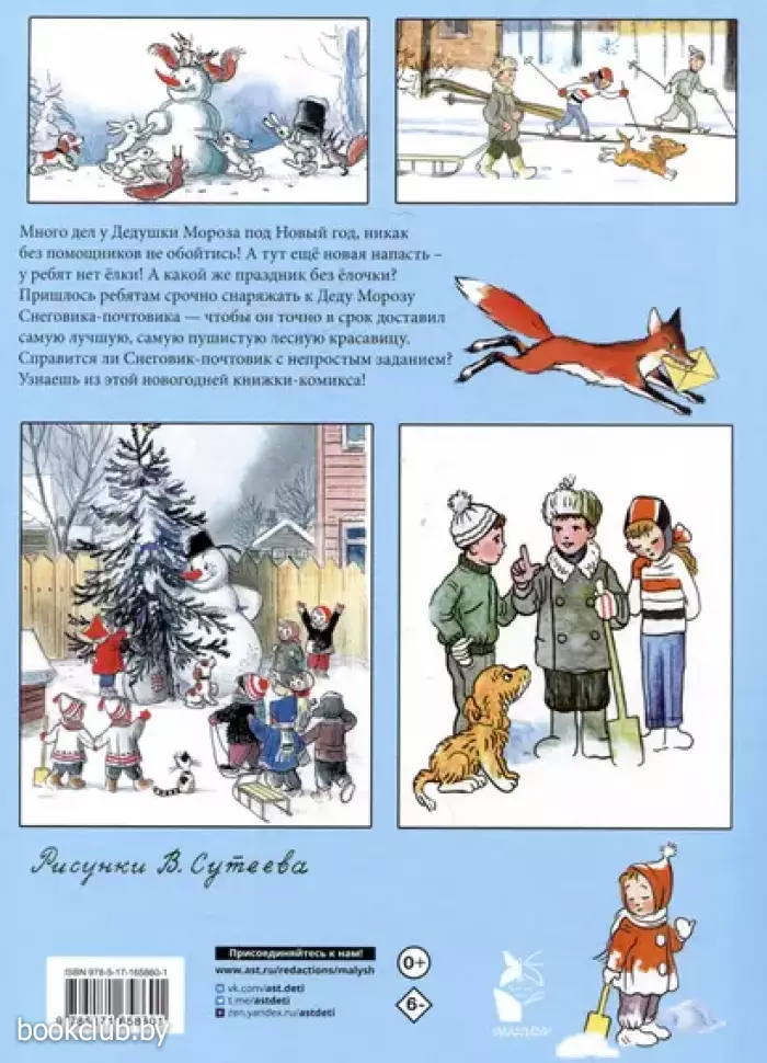 Новая книга в популярной серии "Детские комиксы" – отличный способ провести время вместе с семьёй или друзьями. В сборник вошли три "зимние" сказки: "Снеговик-почтовик", "Он один, а мы все вместе" и "Весной". Придумал и нарисовал их знаменитый писатель, художник, режиссёр-мультипликатор и сценарист В. Сутеев. Он много лет работал в анимации (фактически стоял у её истоков!), и именно поэтому герои его книг получаются тоже как будто "мультяшными" – яркими и динамичными. Книги В. Сутеева по праву считаются классикой детской литературы.