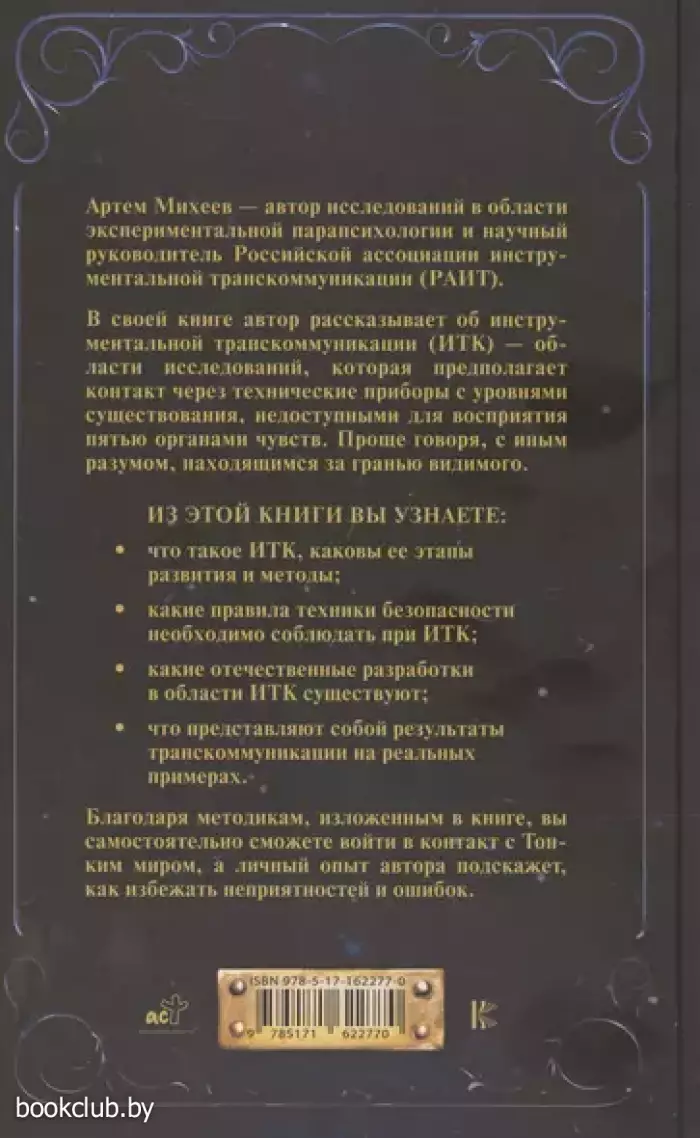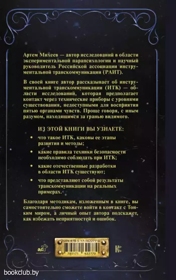 В своей книге автор рассказывает об инструментальной транскоммуникации (ИТК) — области исследований, которая предполагает контакт через технические приборы с уровнями существования, недоступными для восприятия пятью органами чувств. Проще говоря, с иным разумом, находящимся за гранью видимого.