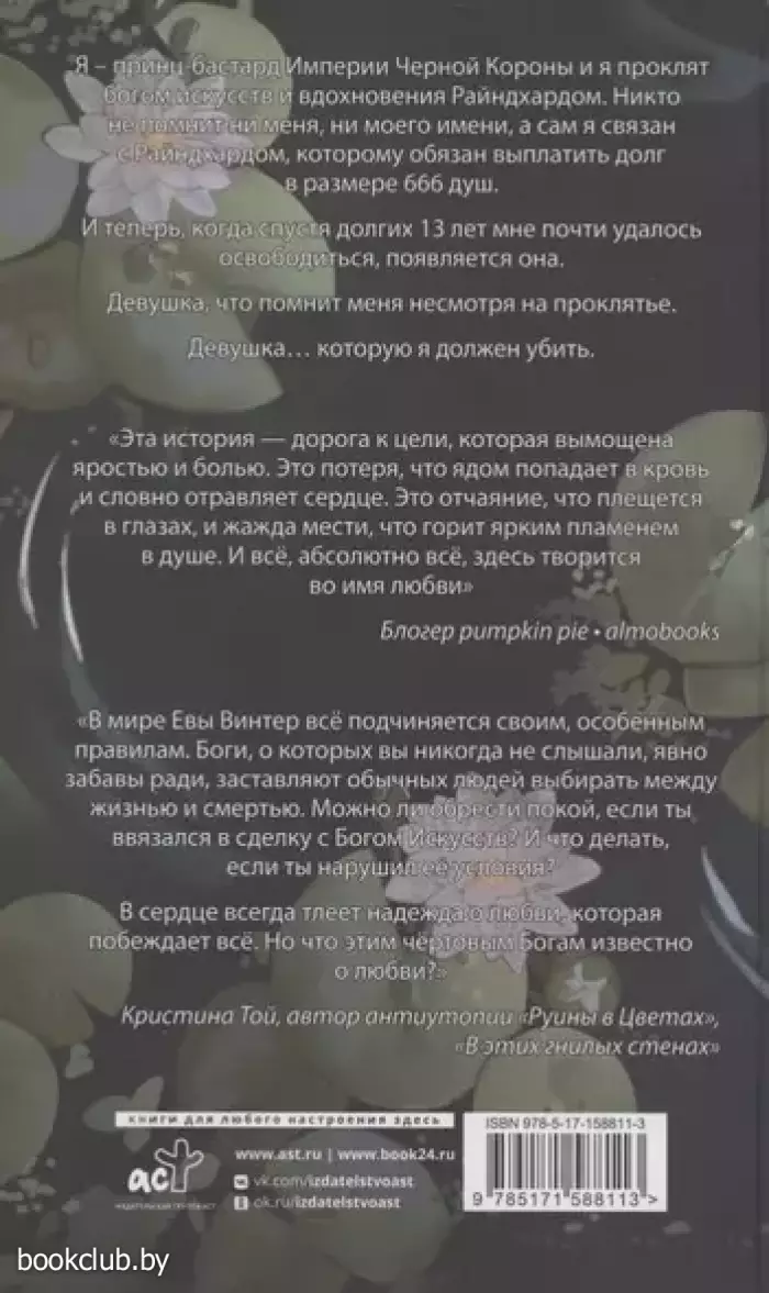 Я – принц-бастард Империи Черной Короны и я проклят богом искусств и вдохновения Райндхардом. Никто не помнит ни меня, ни моего имени, а сам я связан с Райндхардом, которому обязан выплатить долг в размере 666 душ. И теперь, когда спустя долгих 13 лет мне почти удалось освободиться, появляется она. Девушка, что помнит меня несмотря на проклятье. Девушка… которую я должен убить.