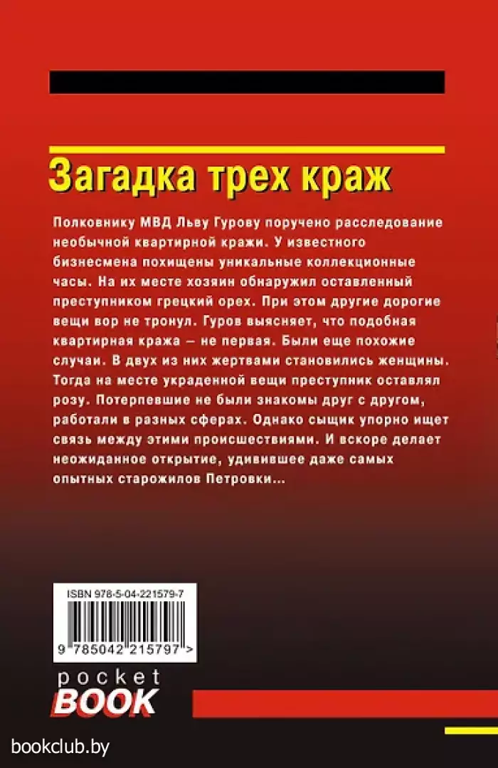 Полковнику МВД Льву Гурову поручено расследование необычной квартирной кражи. У известного бизнесмена похищены уникальные коллекционные часы. На их месте хозяин обнаружил оставленный преступником грецкий орех. При этом другие дорогие вещи вор не тронул. Гуров выясняет, что подобная квартирная кража — не первая. Были еще похожие случаи. В двух из них жертвами становились женщины. Тогда на месте украденной вещи преступник оставлял розу. Потерпевшие не были знакомы друг с другом, работали в разных сферах. Однако сыщик упорно ищет связь между этими происшествиями. И вскоре делает неожиданное открытие, удивившее даже самых опытных старожилов Петровки…
