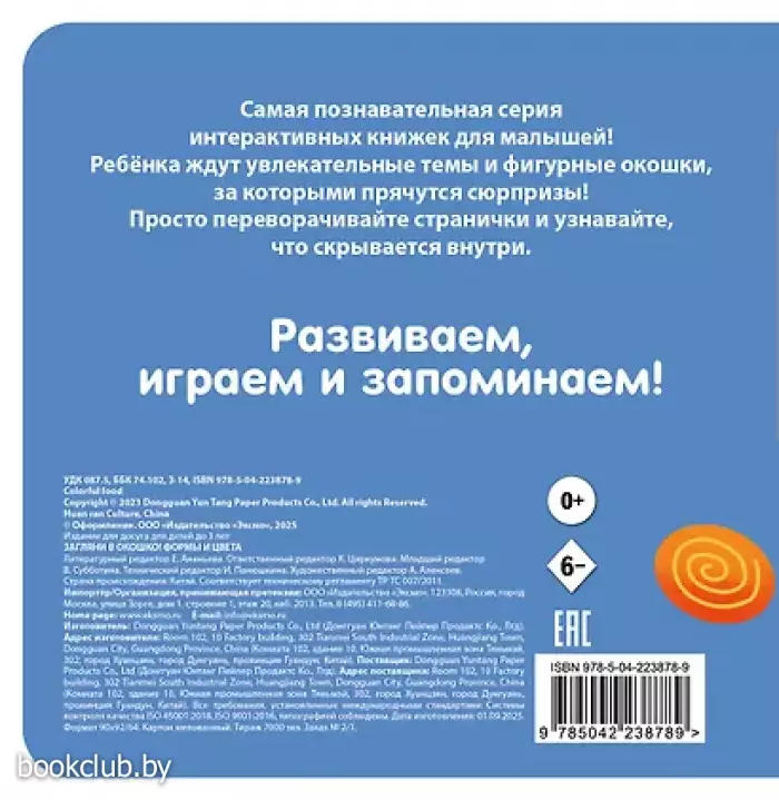 Интерактивная обучающая книжка-игрушка с фигурными окошками для малышей от 1 до 3 лет. Развивает мелкую моторику и воображение, расширяет словарный запас, знакомит с формами и цветами. Загляни в окошко! Сегодня на кухне случился переполох! Продукты разбегаются кто куда: вишенки убегают с мороженого, колбаса с пиццы, сосиска из хот-дога… Что за дела? Скорее открывай книжку, будет вкусно, ярко и весело! На каждой странице тебя ждут фигурные окошки, новые слова, разные цвета и формы. Играй, запоминай и тренируй пальчики! Забавные персонажи и яркие картинки, безопасные материалы и скругленные углы делают эту книжку-игрушку отличным подарком по любому поводу для мальчиков и девочек. Книга идеальна для первого знакомства с фигурами, а небольшой формат позволяет легко держать ее в маленьких ручках во время игры с мамой и папой, читать дома или брать с собой в дорогу. Книги издательства «ЭКСМО» из серии «Загляни в окошко!» - отличное приобретение для вас и ваших близких. Для вашего удобства при оформлении заказа по телефону назовите код товара: 417041