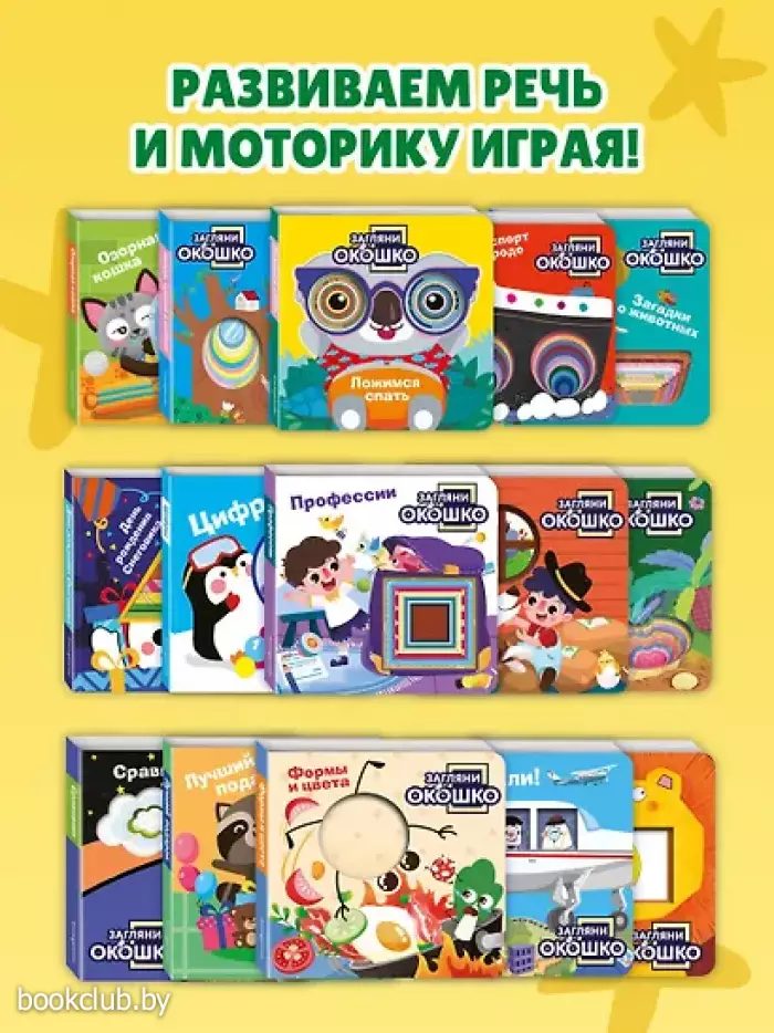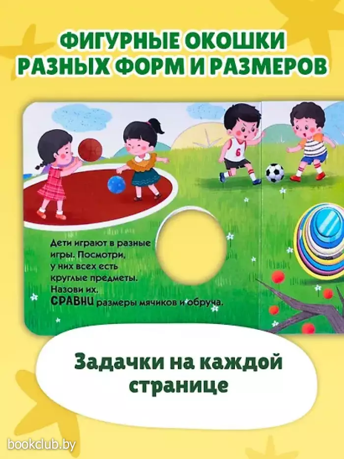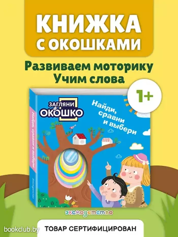 Интерактивная обучающая книжка-игрушка с фигурными окошками для малышей от 1 до 3 лет. Развивает мелкую моторику, внимание и память, расширяет словарный запас и кругозор. Загляни в окошко! Сегодня мы не просто читаем, а играем и проверяем знания! Давай найдем, сравним и выберем. Правильно ли кролик разложил овощи и фрукты на прилавке? У кого самый большой воздушный шар? Какой формы очки и часы у дедушки? Скорее открывай книжку, будем искать ответы вместе! На каждой странице тебя ждут фигурные окошки и интересные задания. Окошки разных форм и размеров создают углубленный рельеф, который хочется трогать снова и снова! Играй, запоминай и тренируй пальчики! Яркие картинки и интересные задания, безопасные материалы и скругленные углы делают эту книжку-игрушку отличным подарком по любому поводу для мальчиков и девочек. А небольшой формат позволяет легко держать ее в маленьких ручках во время игры с мамой и папой, читать дома или брать с собой в дорогу. Книги издательства «ЭКСМО» из серии «Загляни в окошко!» станут прекрасным дополнением вашей библиотеки. Для вашего удобства при оформлении заказа по телефону назовите код товара: 417038