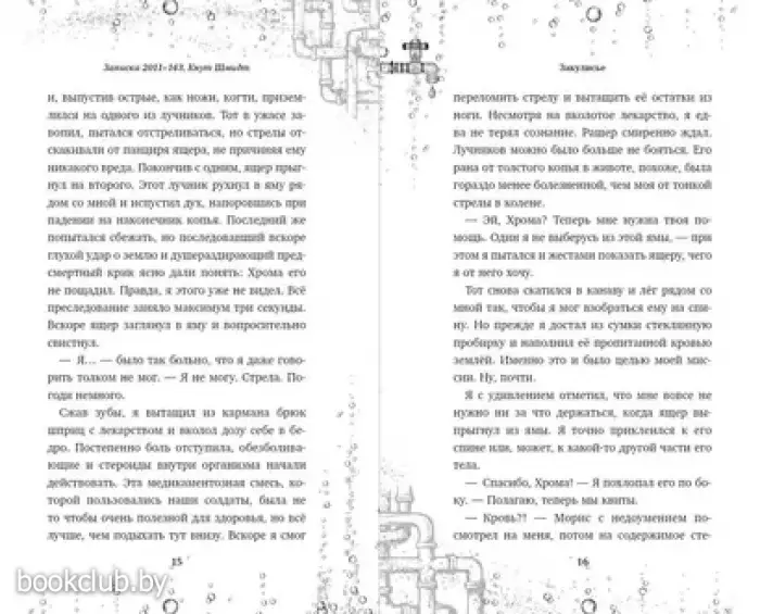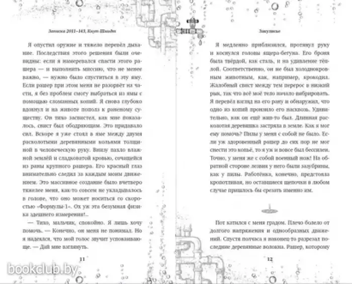 Множество необычных водных локаций в уникальной вселенной Закулисья и монстры, которые поджидают за каждым углом. Классная обложка и внутреннее оформление в хоррор-стилистике. Записки от первого лица и ч/б иллюстрации перед главами помогают полностью погрузиться в историю. Захватывающая книга, от которой невозможно оторваться до последней страницы!