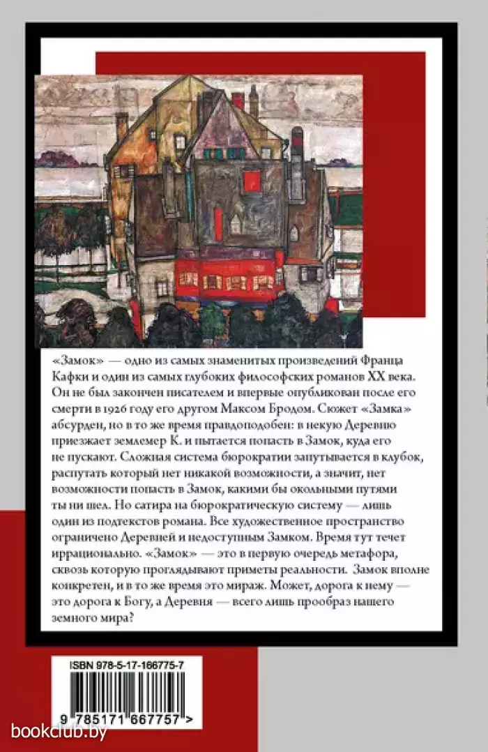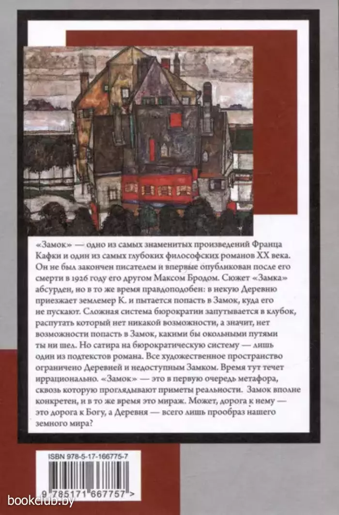«Замок» — одно из самых знаменитых произведений Франца Кафки и один из самых глубоких философских романов XX века. Он не был закончен писателем и впервые опубликован после его смерти в 1926 году его другом Максом Бродом. Сюжет «Замка» абсурден, но в то же время правдоподобен: в некую Деревню приезжает землемер К. и пытается попасть в Замок, куда его не пускают. Сложная система бюрократии запутывается в клубок, распутать который нет никакой возможности, а значит, нет возможности попасть в Замок, какими бы окольными путями ты ни шел. Но сатира на бюрократическую систему — лишь один из подтекстов романа. Все художественное пространство ограничено Деревней и недоступным Замком. Время тут течет иррационально. «Замок» — это в первую очередь метафора, сквозь которую проглядывают приметы реальности. Замок вполне конкретен, и в то же время это мираж. Может, дорога к нему — это дорога к Богу, а Деревня — всего лишь прообраз нашего земного мира?