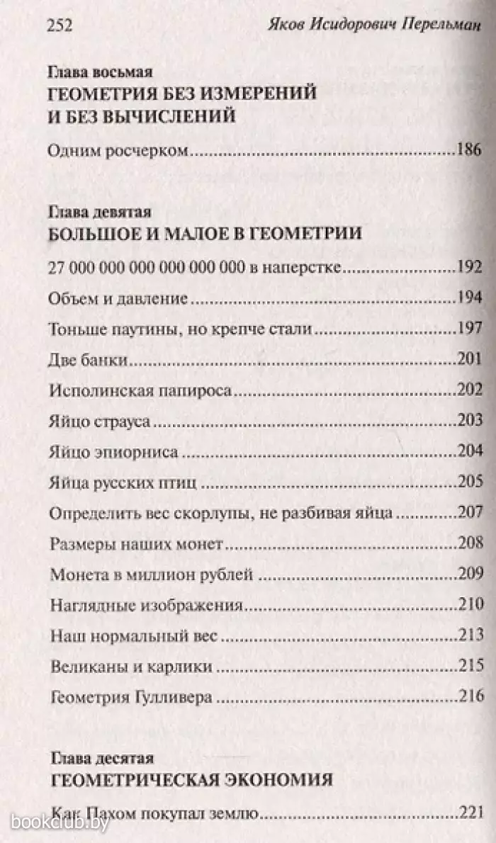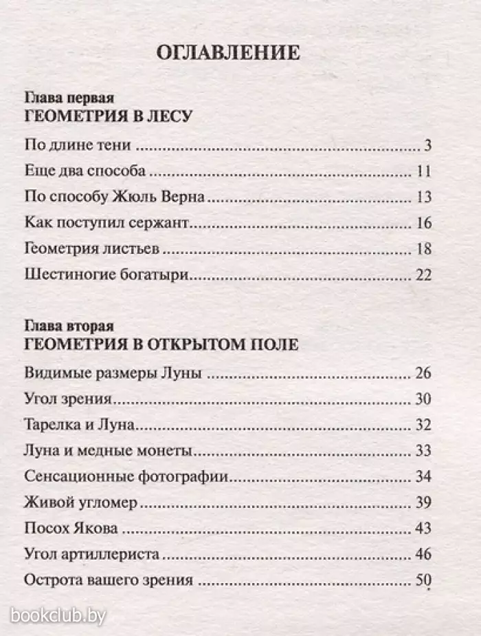 Геометрические задачи можно решать, не согнувшись над учебником, а на пляже и на пикнике, в походе, в лесу или в поле, у реки или пруда. Деревья, трава и небо, ветер, вода и солнце — вот "аудитория" для знакомящихся с "занимательной геометрией" по Перельману. К тому же, в книге рассказывается о том, какие интересные геометрические явления описаны в произведениях Жюля Верна, Джека Лондона и Майн Рида, Пушкина, Гоголя и других прославленных авторов отечественной и зарубежной литературы, и кто из них был в своих описаниях прав, а кто ошибался.