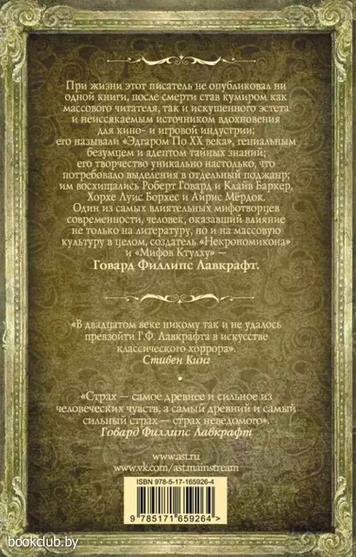 При жизни этот писатель не опубликовал ни одной книги, после смерти став кумиром как массового читателя, так и искушенного эстета, и неиссякаемым источником вдохновения для кино- и игровой индустрии; его называли "Эдгаром По ХХ века", гениальным безумцем и адептом тайных знаний; его творчество уникально настолько, что потребовало выделения в отдельный поджанр; им восхищались Роберт Говард и Клайв Баркер, Хорхе Луис Борхес и Айрис Мёрдок.