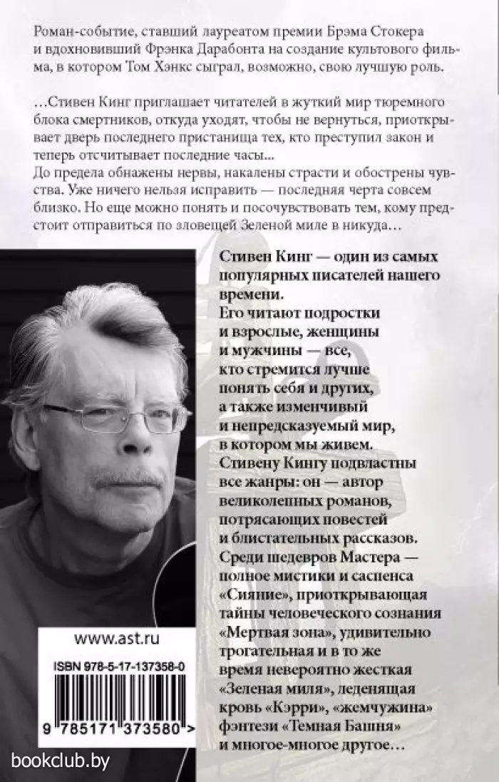 Роман-событие, ставший лауреатом премии Брэма Стокера и вдохновивший Фрэнка Дарабонта на создание культового фильма, в котором Том Хэнкс сыграл, возможно, свою лучшую роль.