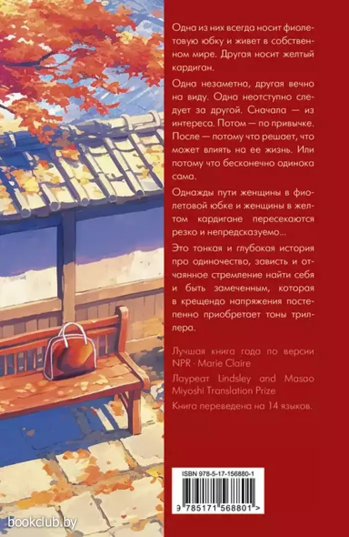 Одна из них всегда носит фиолетовую юбку и живет в собственном мире. Другая носит желтый кардиган. Одна незаметна, другая вечно на виду. Одна неотступно следует за другой. Сначала — из интереса. Потом — по привычке. После — потому что решает, что может влиять на ее жизнь. Или потому что бесконечно одинока сама. Однажды пути женщины в фиолетовой юбке и женщины в желтом кардигане пересекаются резко и непредсказуемо... Это тонкая и глубокая история про одиночество, зависть и отчаянное стремление найти себя и быть замеченным, которая в крещендо напряжения постепенно приобретает тоны триллера.
