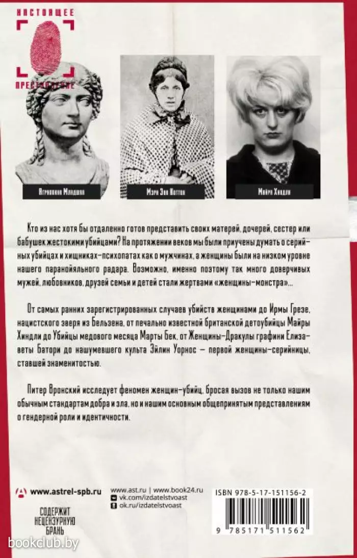 Книги издательства «АСТ» из серии «Настоящее преступление» станут прекрасным дополнением вашей библиотеки. Для вашего удобства при оформлении заказа по телефону назовите код товара: 401356