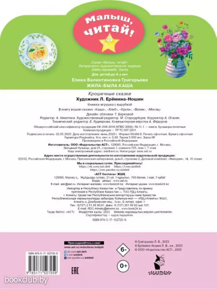 Книга «Жила-была каша. Крошечные сказки» - правильный выбор и отличное приобретение. Для вашего удобства при оформлении заказа по телефону назовите код товара: 186870